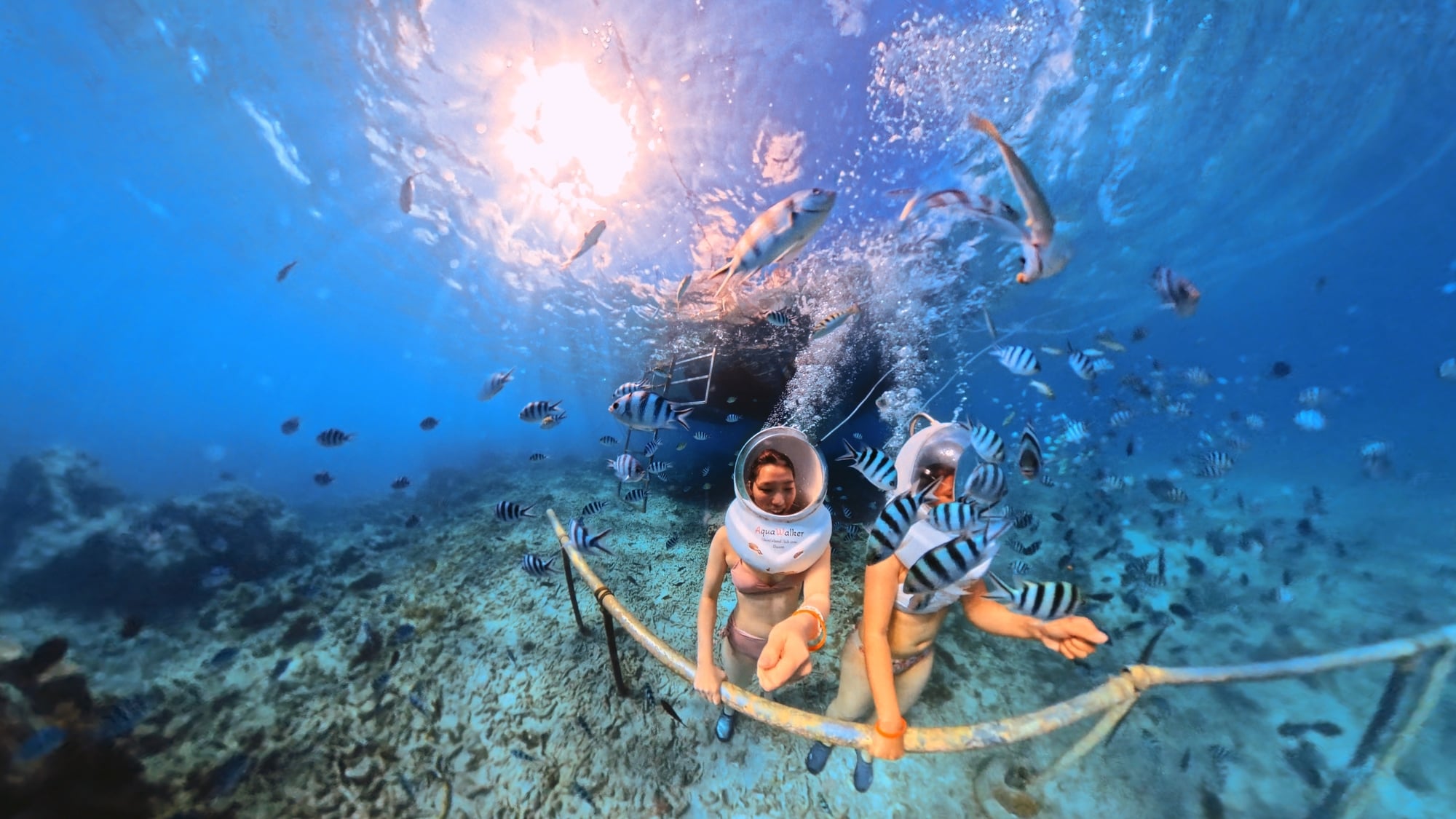- 10:20 아쿠아워커, 제트스키, 보트로 바다 거북이 워칭, 비키니섬 투어, 보트 스노클링