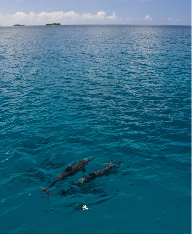 돌고래는 괌 연안에서 많이 서식하며, 무리지어 놀고 뛰면서 기분 좋은 장면을 함께 즐길 수 있답니다.