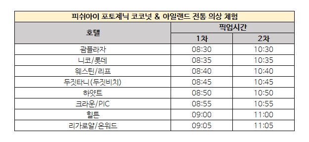 - - 호텔 왕복 픽업 서비스(포함 옵션 구매시)
