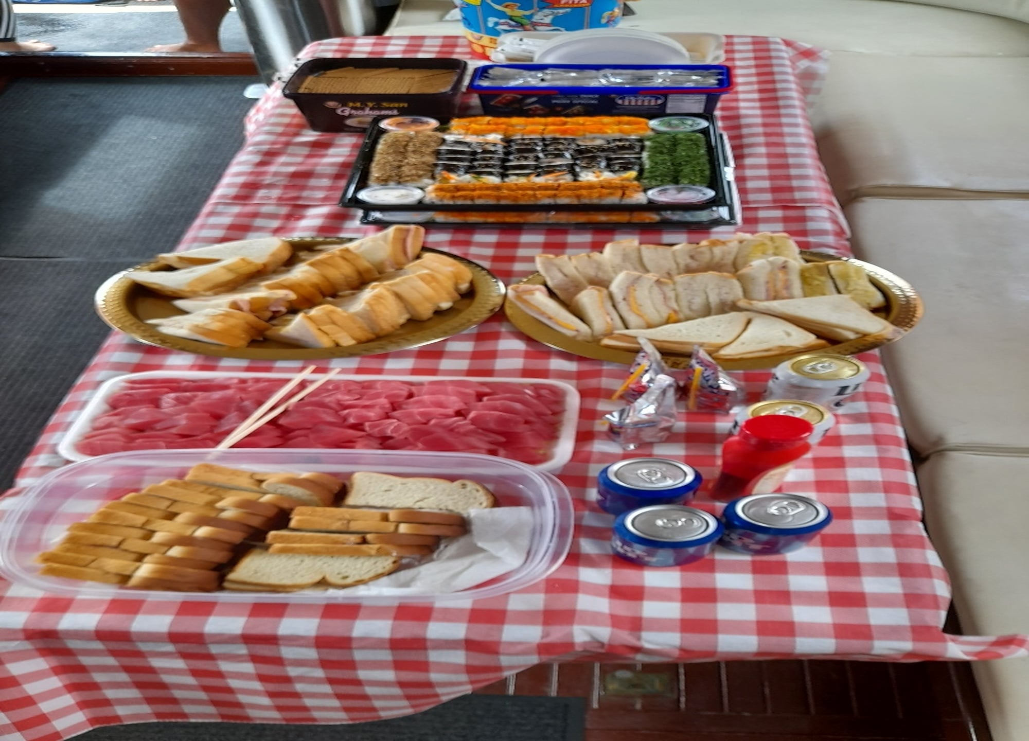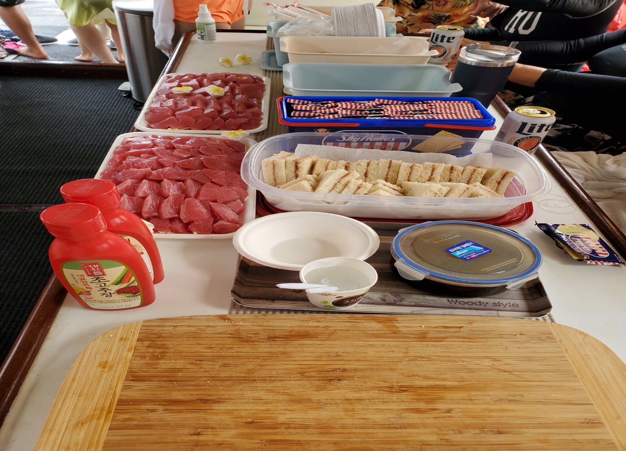 - 간단한 먹거리 (참치회, 샌드위치, 음료 등)