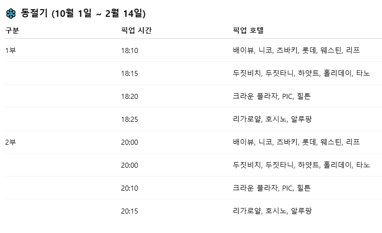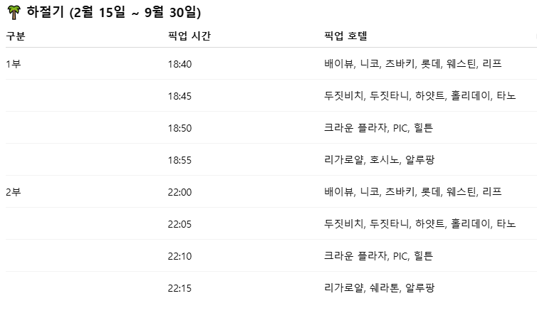 📍 호텔별 상세 픽업 시간 및 장소는 상품 상세 설명 또는 카카오톡으로 안내드립니다.