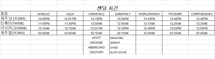 - 호텔에서 공항으로 샌딩 포함으로 진행 하셨을 경우 기사님이랑 샌딩 시간 꼭 확인 부탁 드립니다.