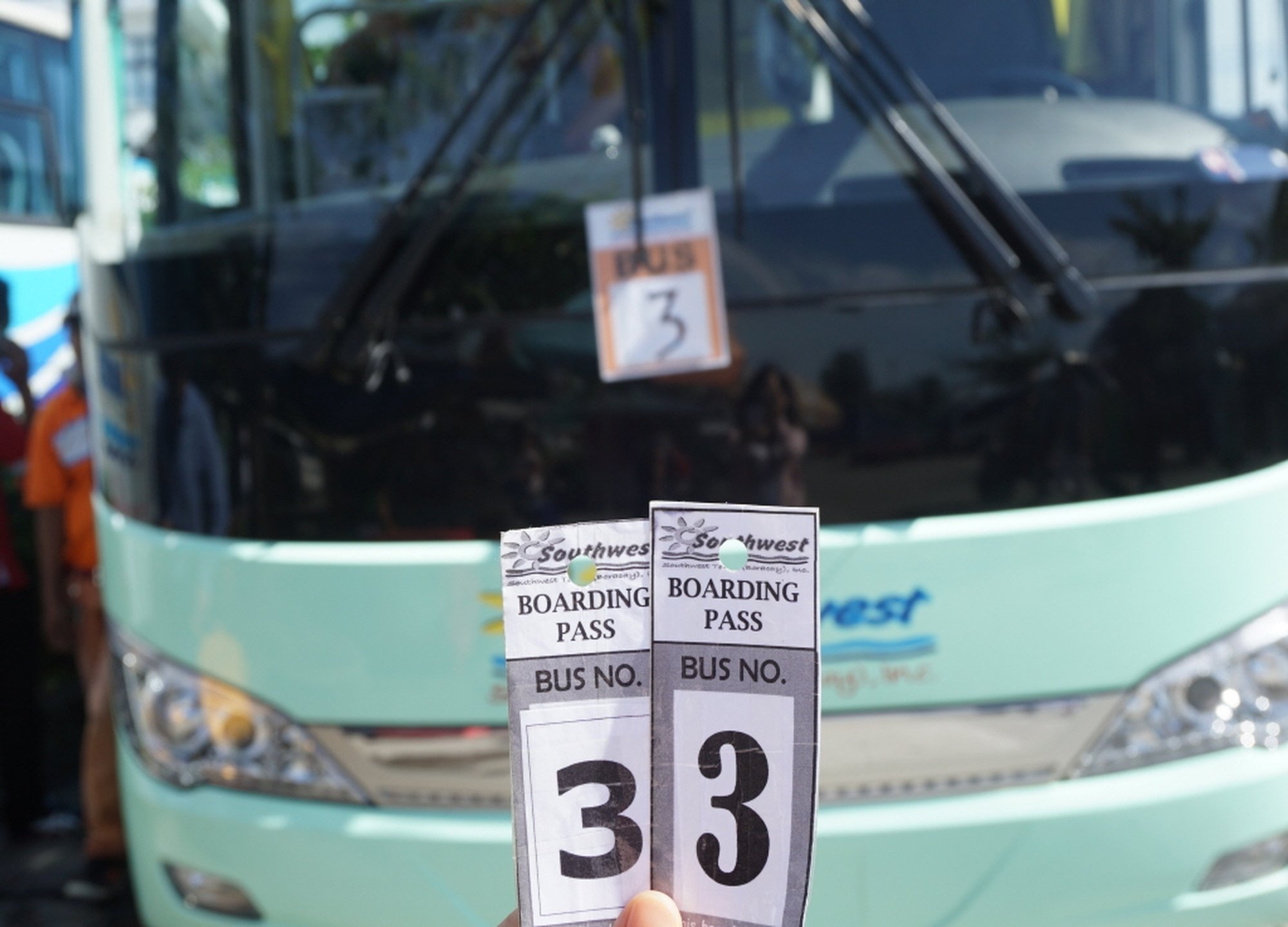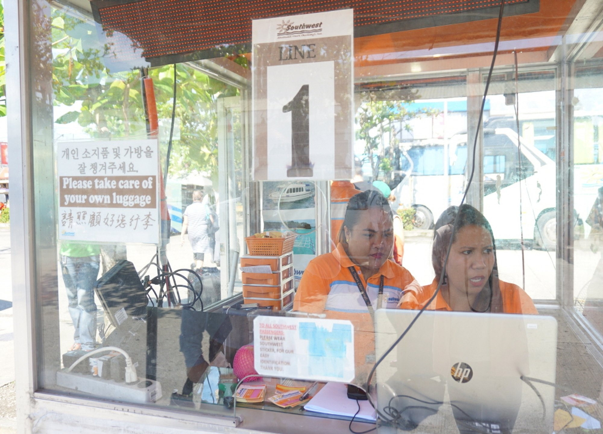 선착장으로 개인적으로 이동하셔서 사우스웨스트 버스업체 부스를 찾아주셔야 합니다.