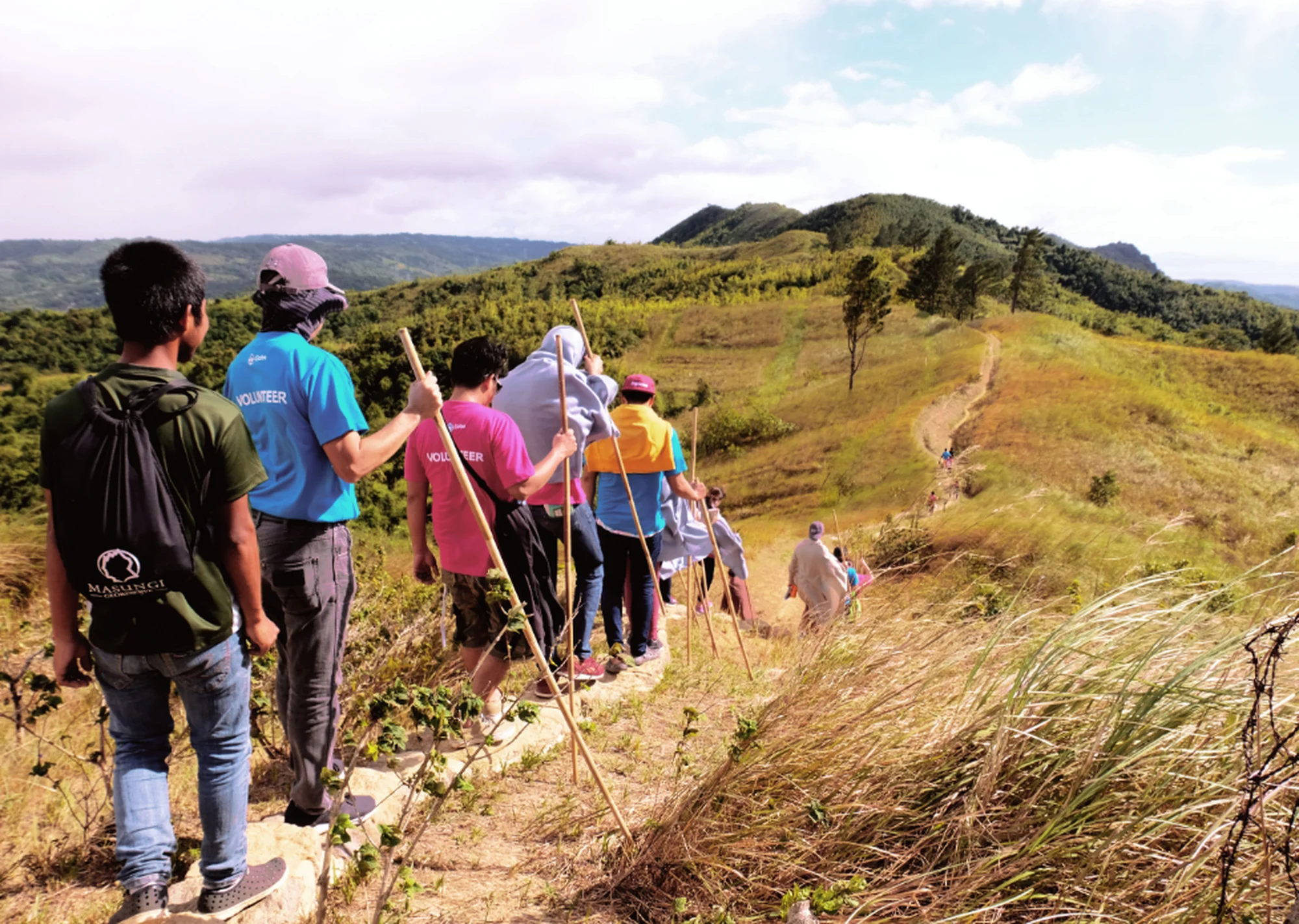 황폐화된 산지를 등반하며 가지치기, 잡초 제거, 퇴비 순환, 나무 심기 등의 보전 활동 진행