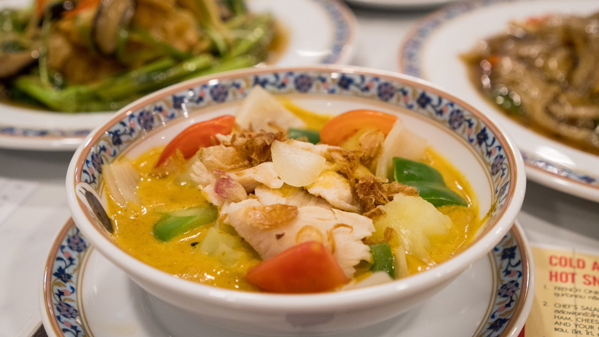 만두국이라 할수 있는 완탕수프를 77밧, 팟타이를 91밧, 볶음밥을 65밧에 즐길수 있어요.