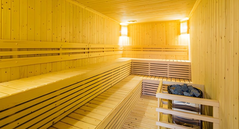 including a pebble foot bath, cold plunge pool, Himalayan salt room, hinoki room, charcoal room, loess room, sauna room, and ice room.