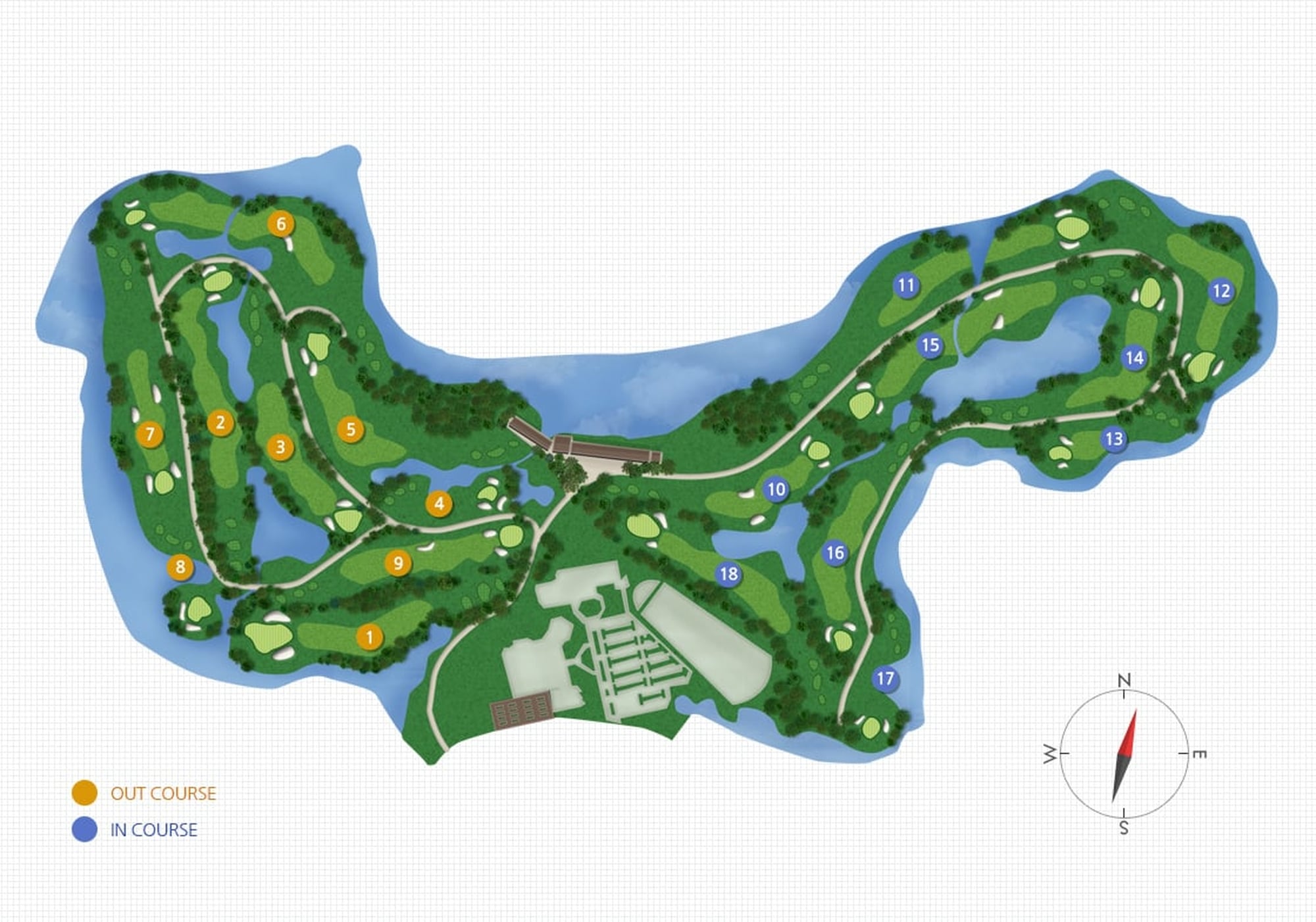 - Dr.Anuwat가 1993년 8월에 설계한 곳으로 총 7,117 yardage로 18홀 전체가 편평한 평지로 되어있어 라운딩 하기에 편안하며 광활한 느낌의 골프장으로 골프 매니아들에게 아주 매혹적인 골프코스입니다.