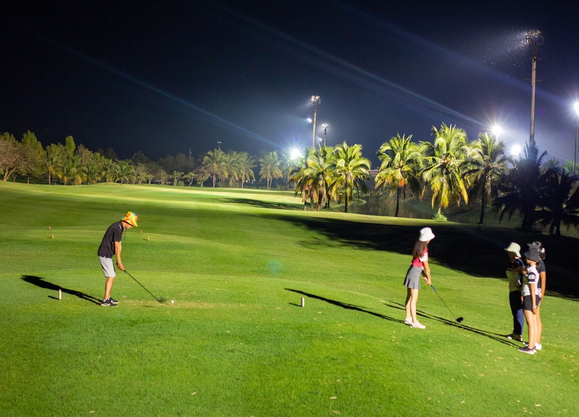 야간 골프는 18홀 중 약 10개 홀에만 라이트가 설치되어 있습니다.