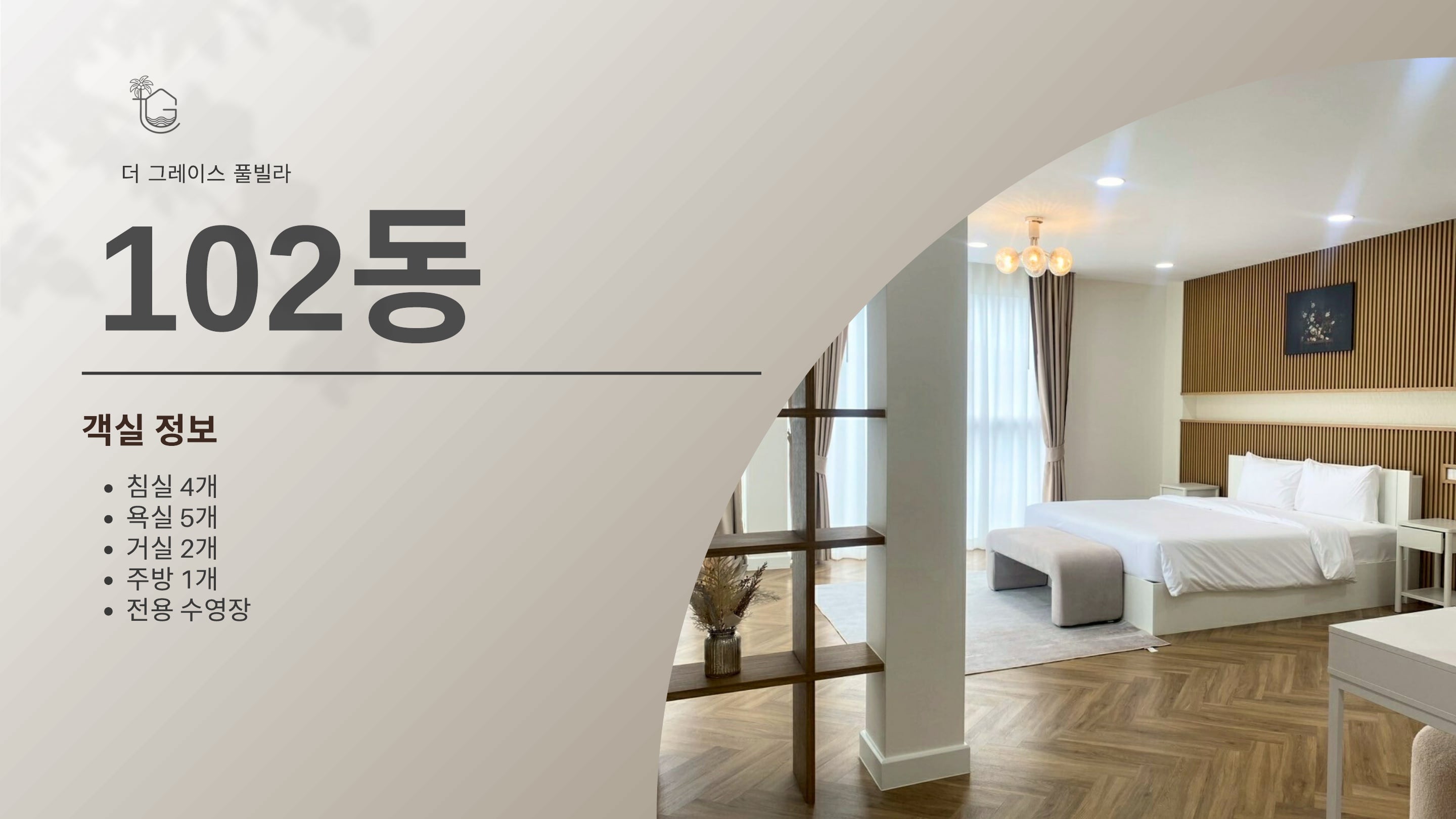 3 베드룸 풀빌라 킹 3 4 베드룸 풀빌라 킹 4 5 베드룸 풀빌라 킹 5 객실 특이사항전 객실 스마트 TV