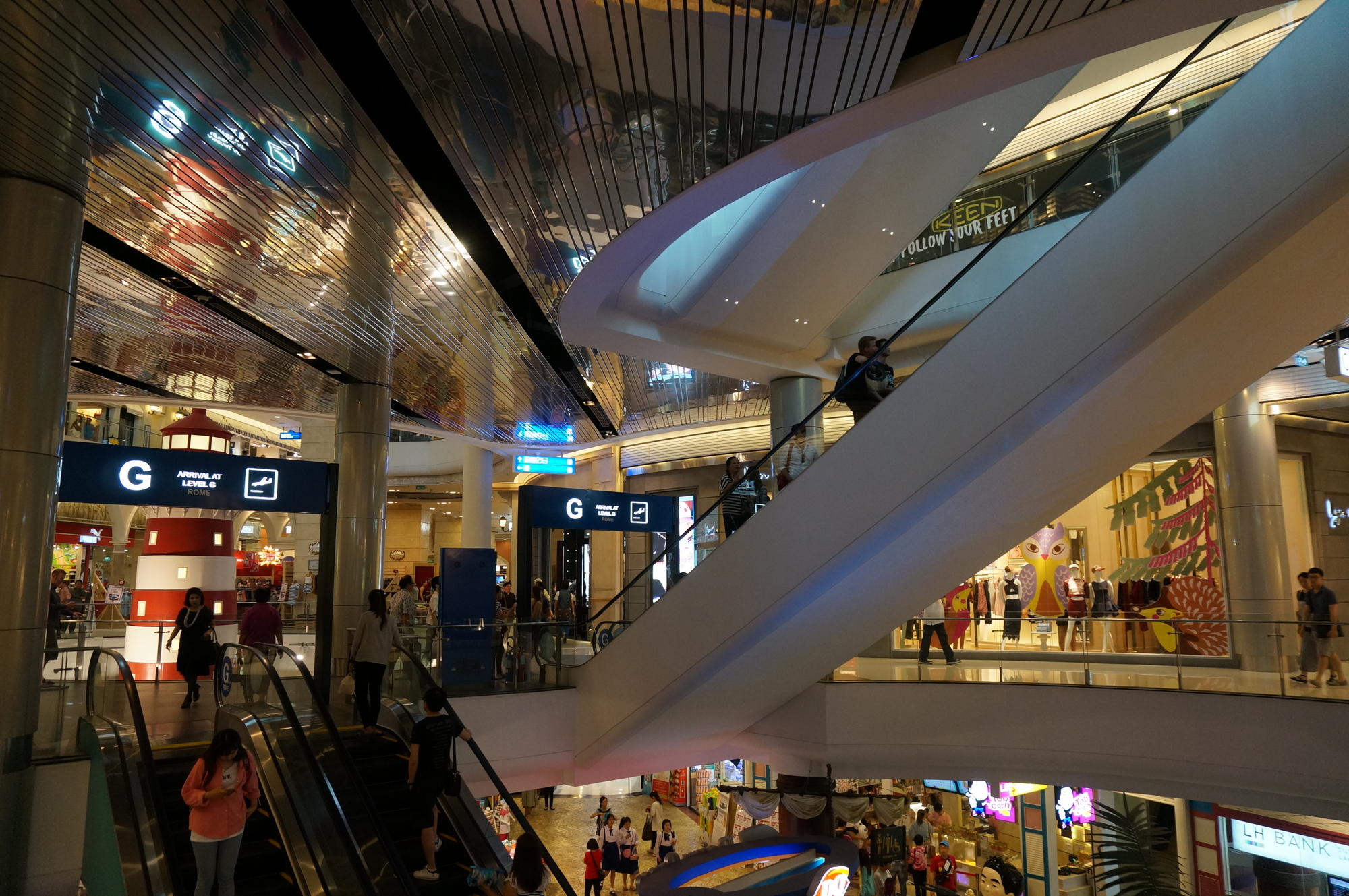 공항을 컨셉으로 만들어 각 층별로 파리, 도쿄, 런던 등 세계 유명 도시의 컨셉으로 구성되어 있습니다.