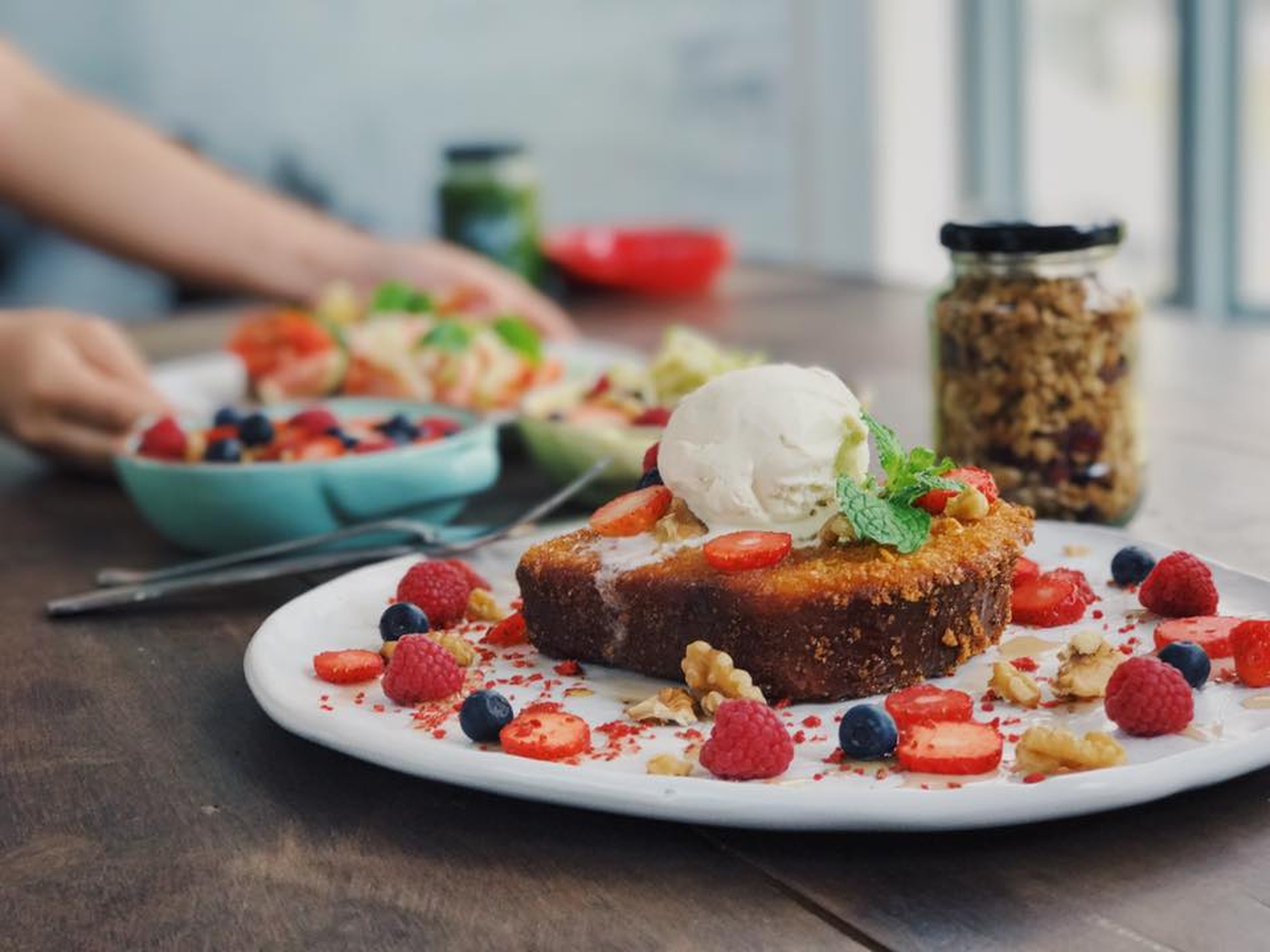 크리스피 프렌치 토스트하고 아보카도&허니 스무디가 인기가 많다고 추천 해 줬어요.^^