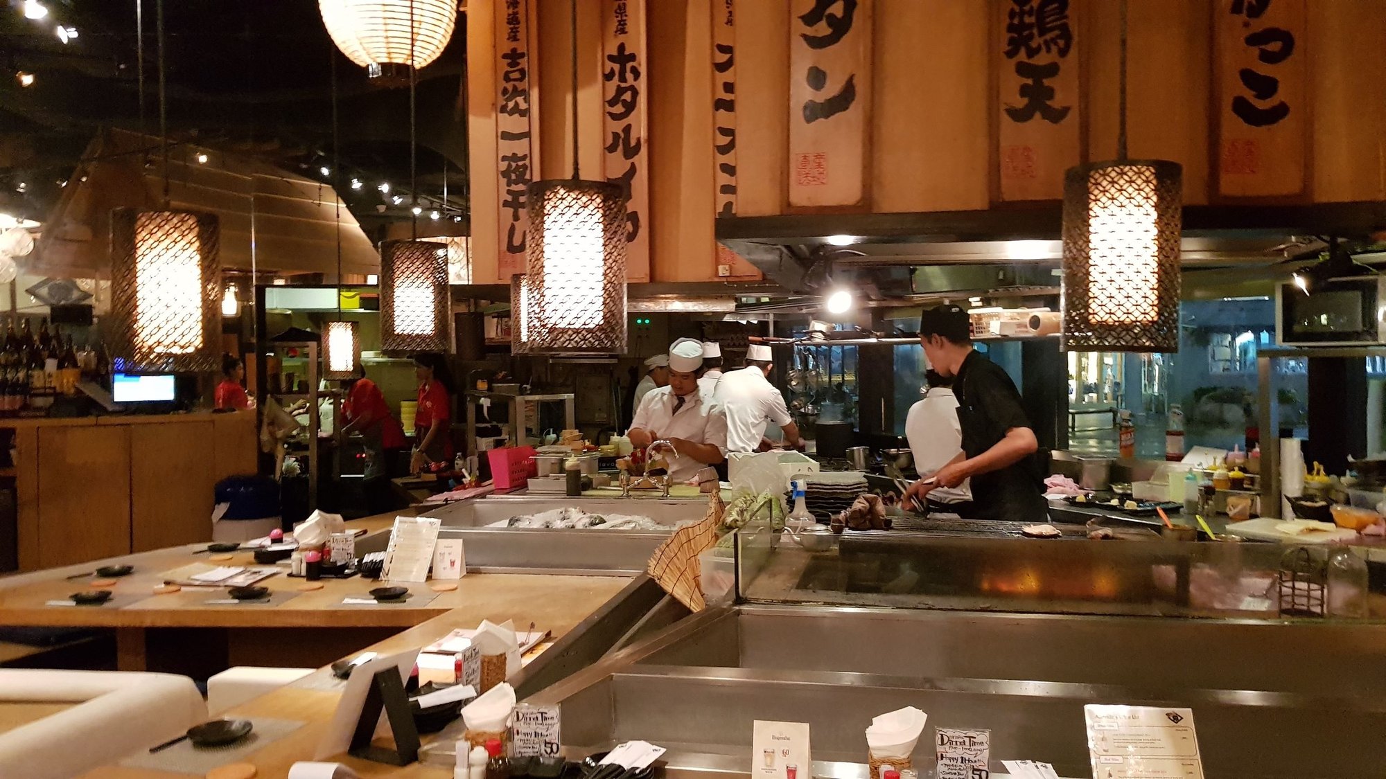 대형 프랜차이즈 이자까야로 분위기가 시끌벅적 하면서도 매장이 깔끔하고 서비스도 좋습니다. 매장 중앙에 간단한 샐러드 바가 있어서 무제한으로 이용이 가능합니다. 가격은 사시미류를 제외하면 단품이 200-400바트 사이인데 이것저것 주문하다 보면 금액이 꽤 나올 수 있습니다.