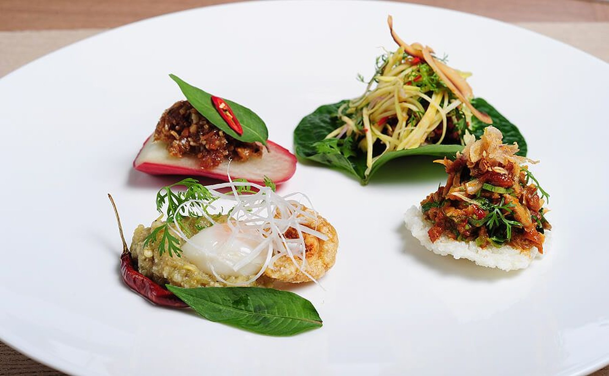 두 요리사 모두 19 세기에서 20 세기 동안 왕실 레시피와 고대 타이 레시피에 영감을 얻어 현대적인 요리 기술이 적용된 태국 요리를 선보입니다. 고전 레시피와 현대적인 감각의 음식 스타일이 어우러져 태국 음식이지만 와인과 함께서 먹어도 좋을 태국 음식을 맛보실 수 있습니다. 2017년 2018년 2019년 미슐랭 1 스타를 받았습니다.