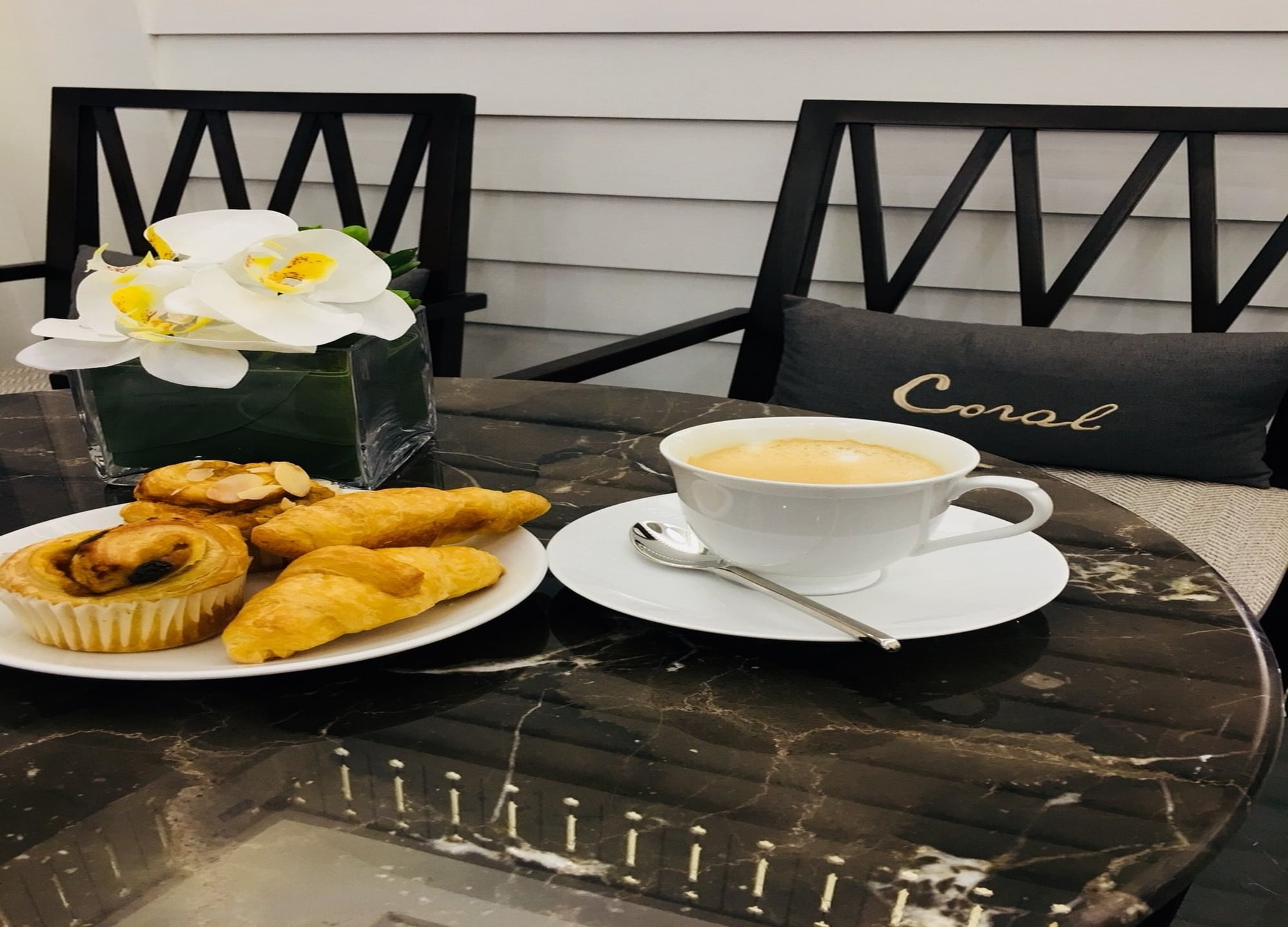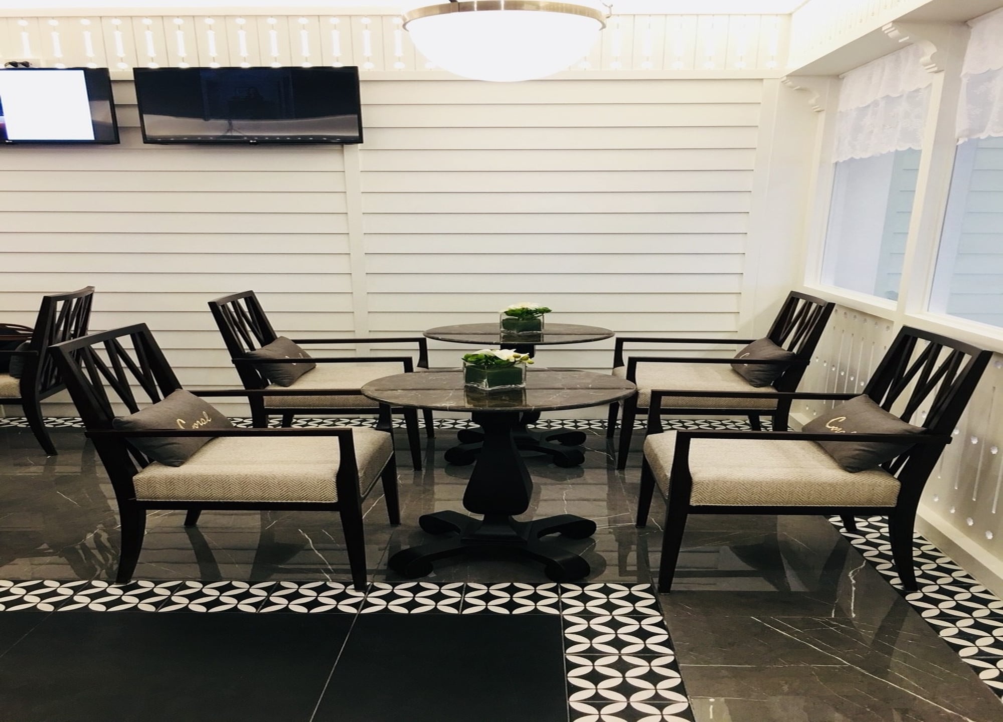 - 코랄 스타일의 편안한 좌석 라운지.