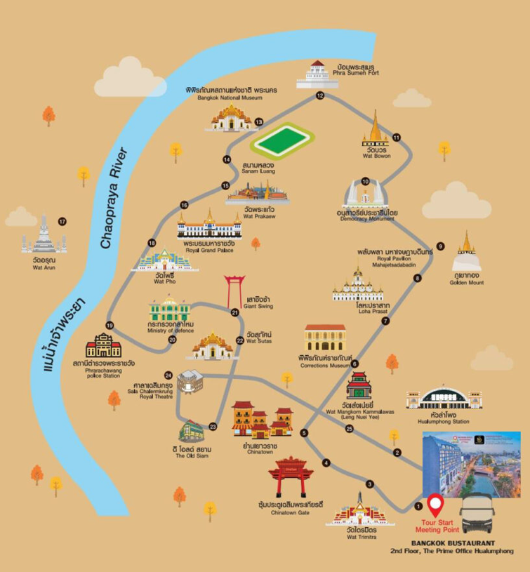 방콕 시내를 달리며 다양한 명소를 편안하게 감상하고, 품격 있는 태국 전통 요리를 즐길 수 있는 이색 미식 투어입니다.