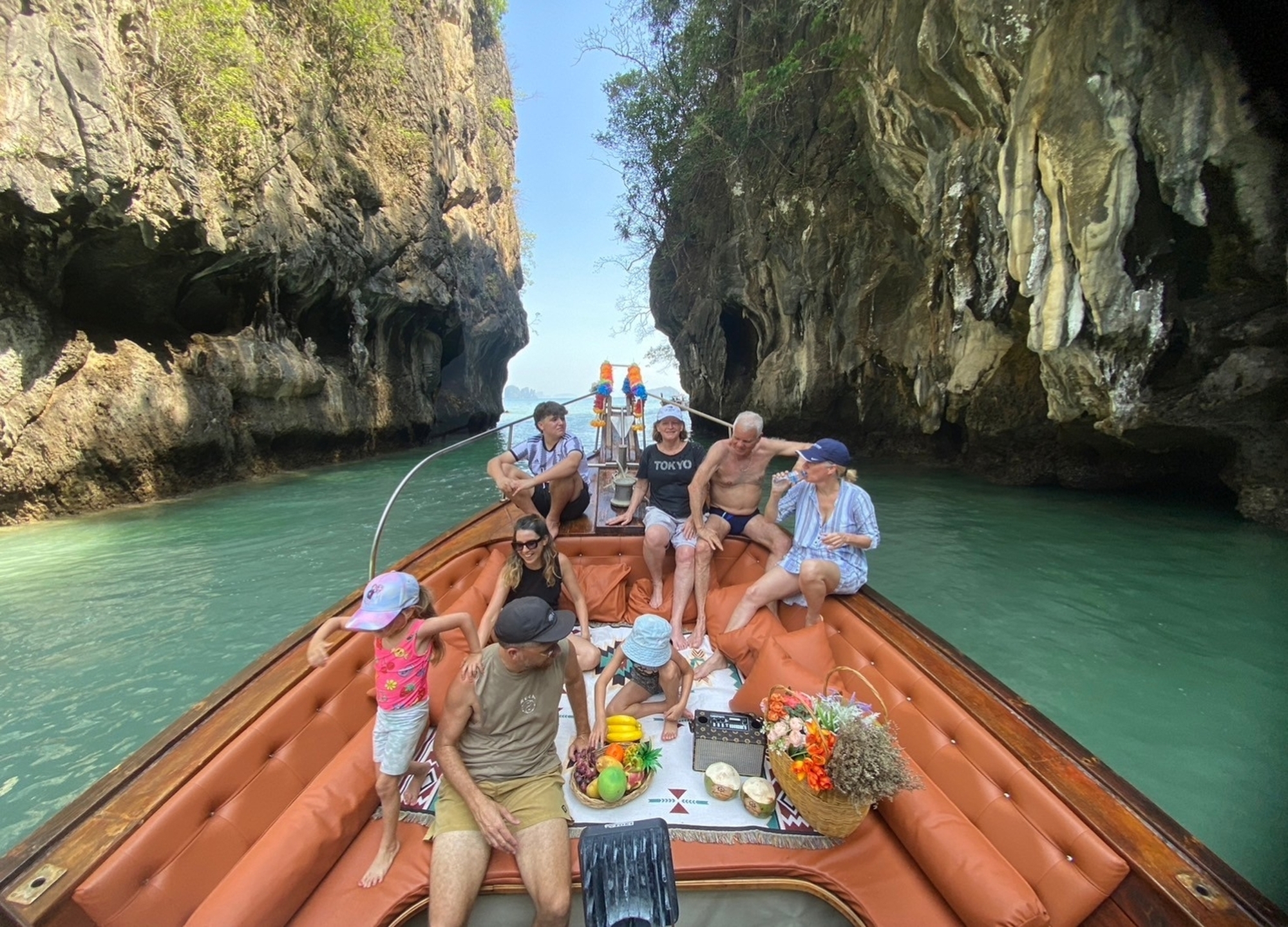 롱테일 보트를 타고 바다의 아름다움을 감상해요.