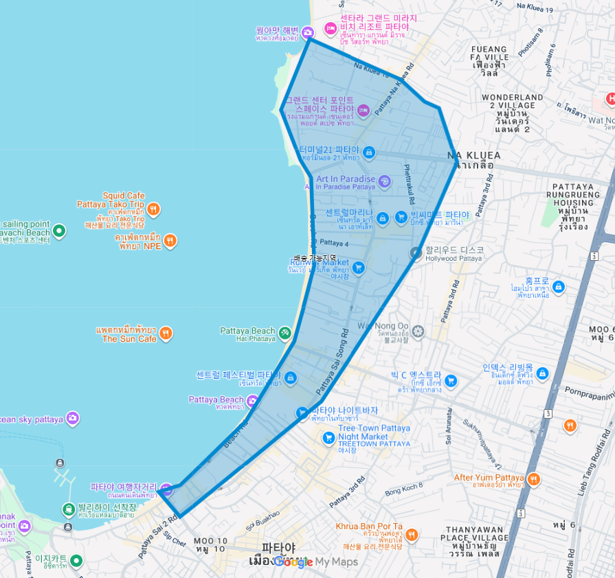 배송은 파타야 시내만 가능하며, 좀티엔, 나좀티엔, 나끄르아등 외곽 지역은 불가능합니다.