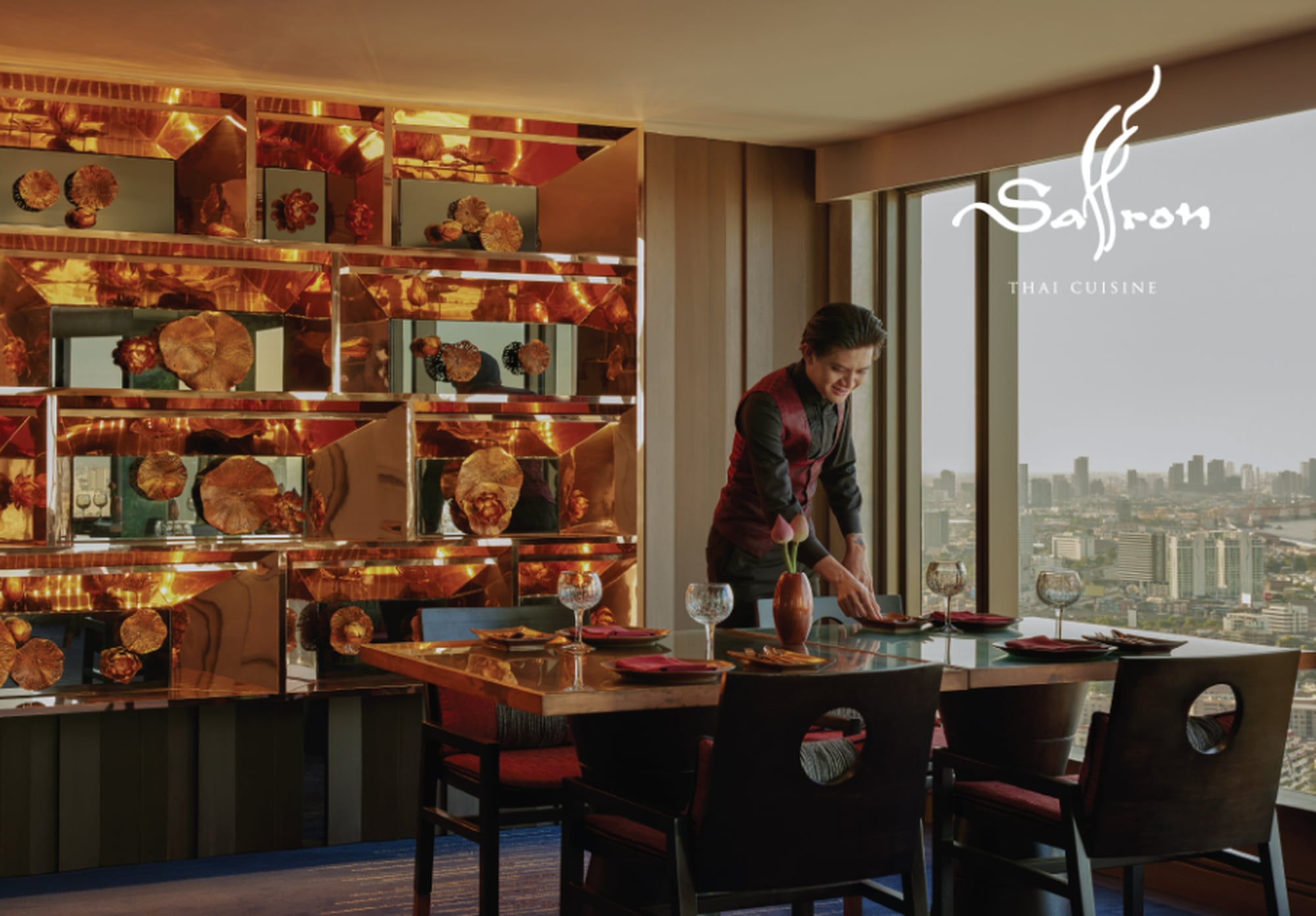 방콕 중심부, 52층에서 펼쳐지는 Saffron은 태국 전통 요리의 깊이와 현대적 감각을 결합한 파인다이닝 레스토랑입니다.