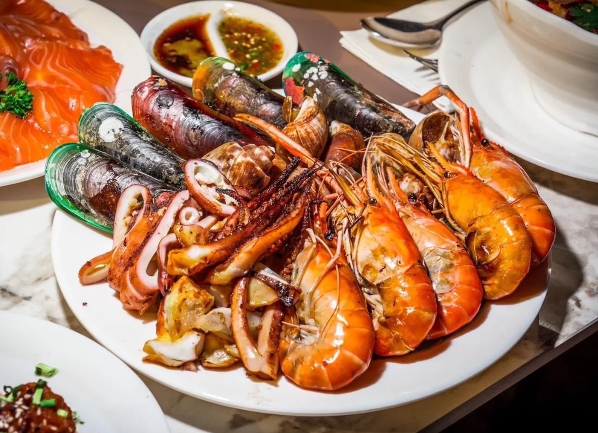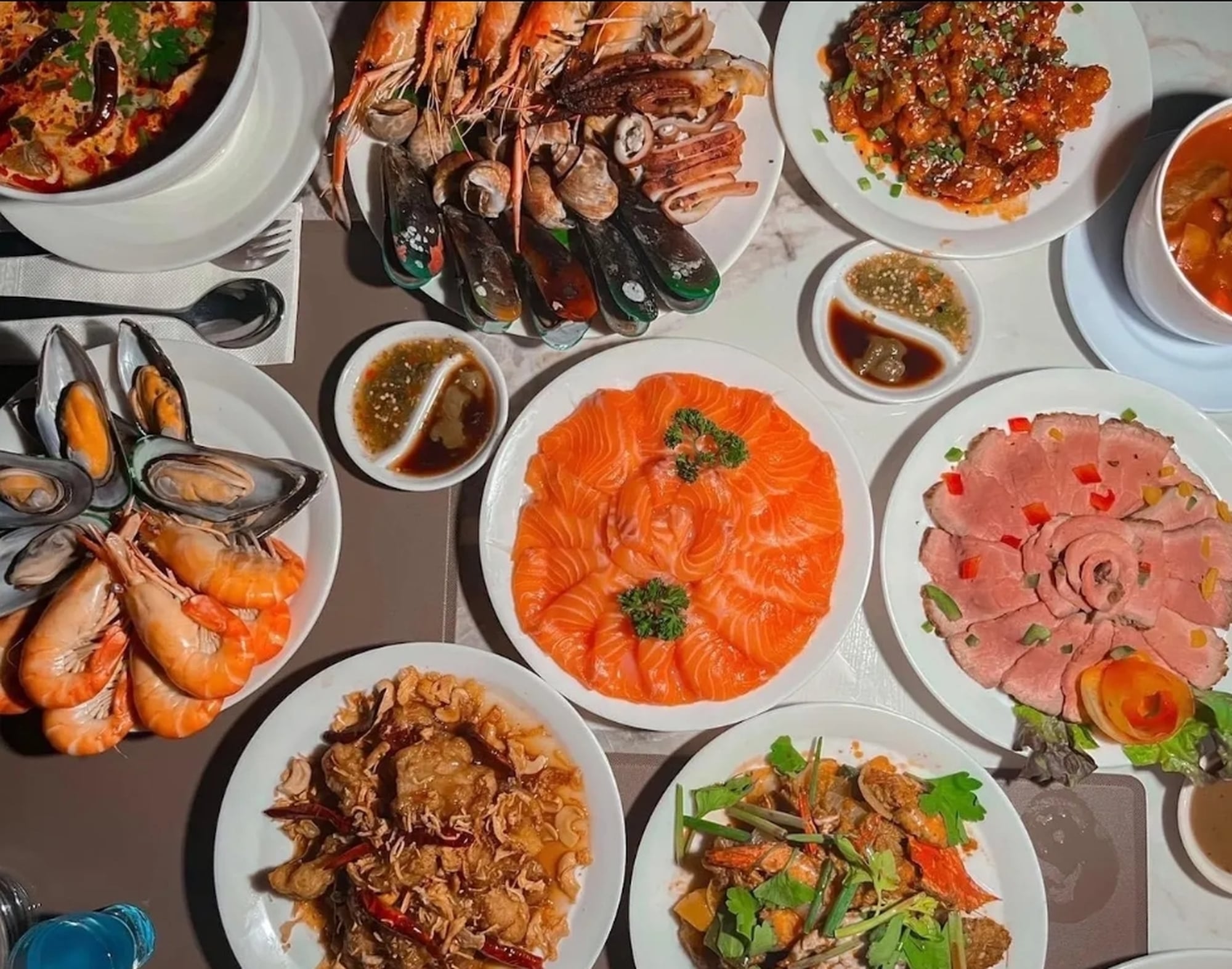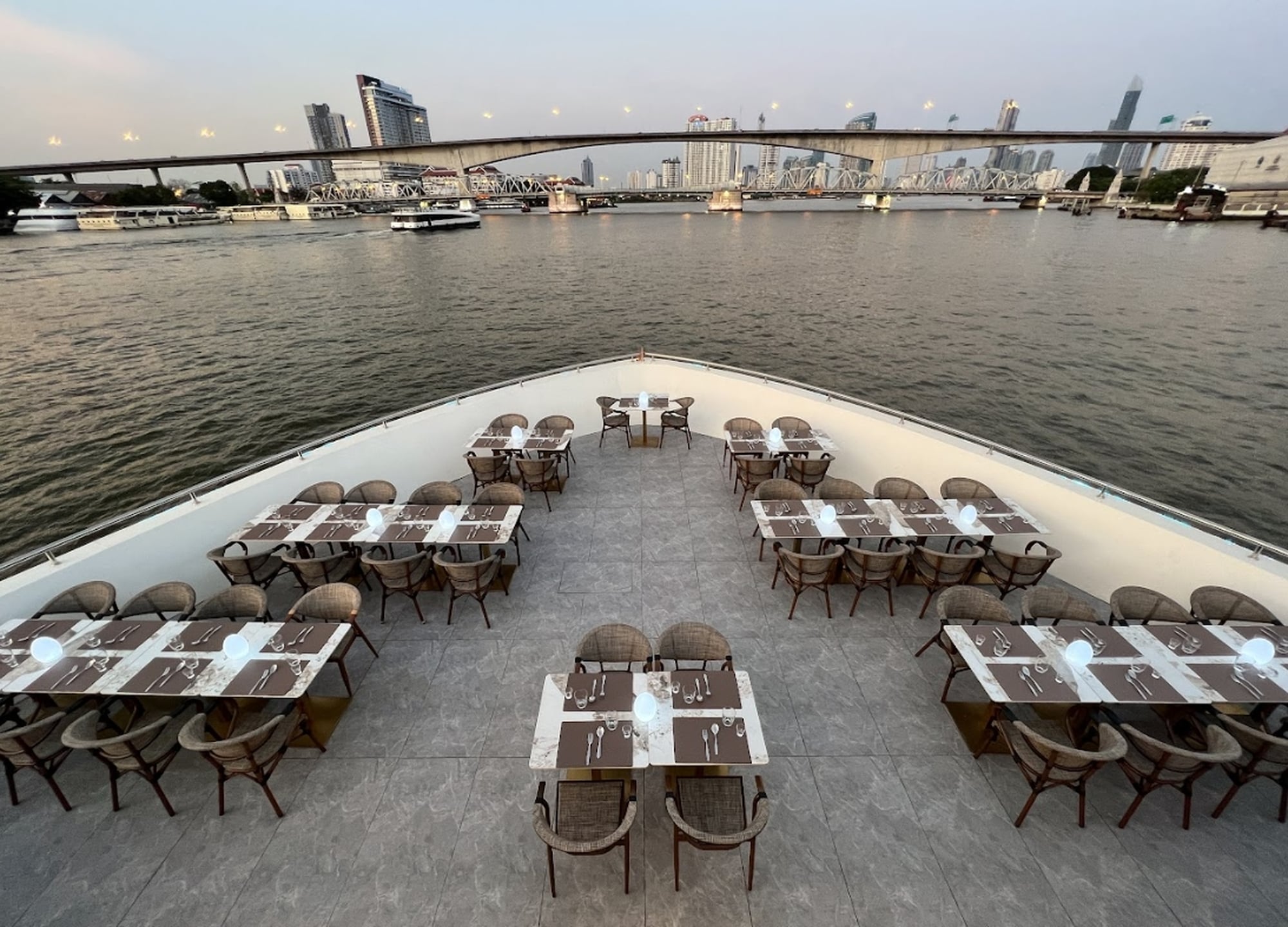 실내석과 실외석 모두 음식은 동일하며 뷔페는 타이식, 인터내셔널 뷔페, 웰컴 드링크, 디저, 커피 또는 차 등이 제공됩니다.