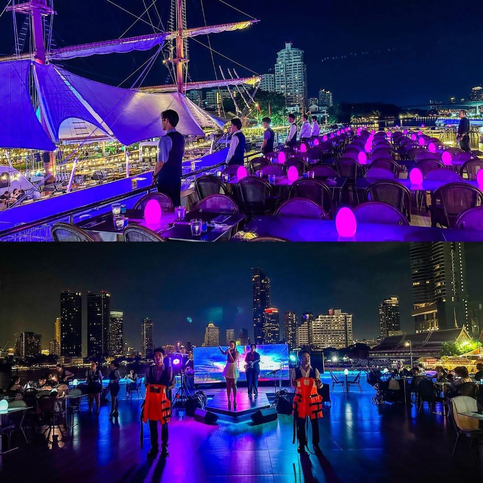아시아티크에서 운영되는 디너 크루즈로 선상에서 라이브 음악 공연이 진행됩니다.