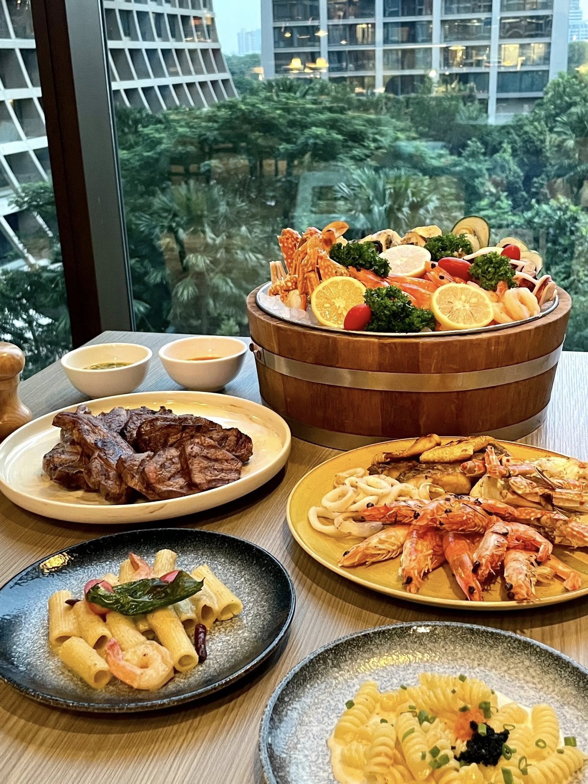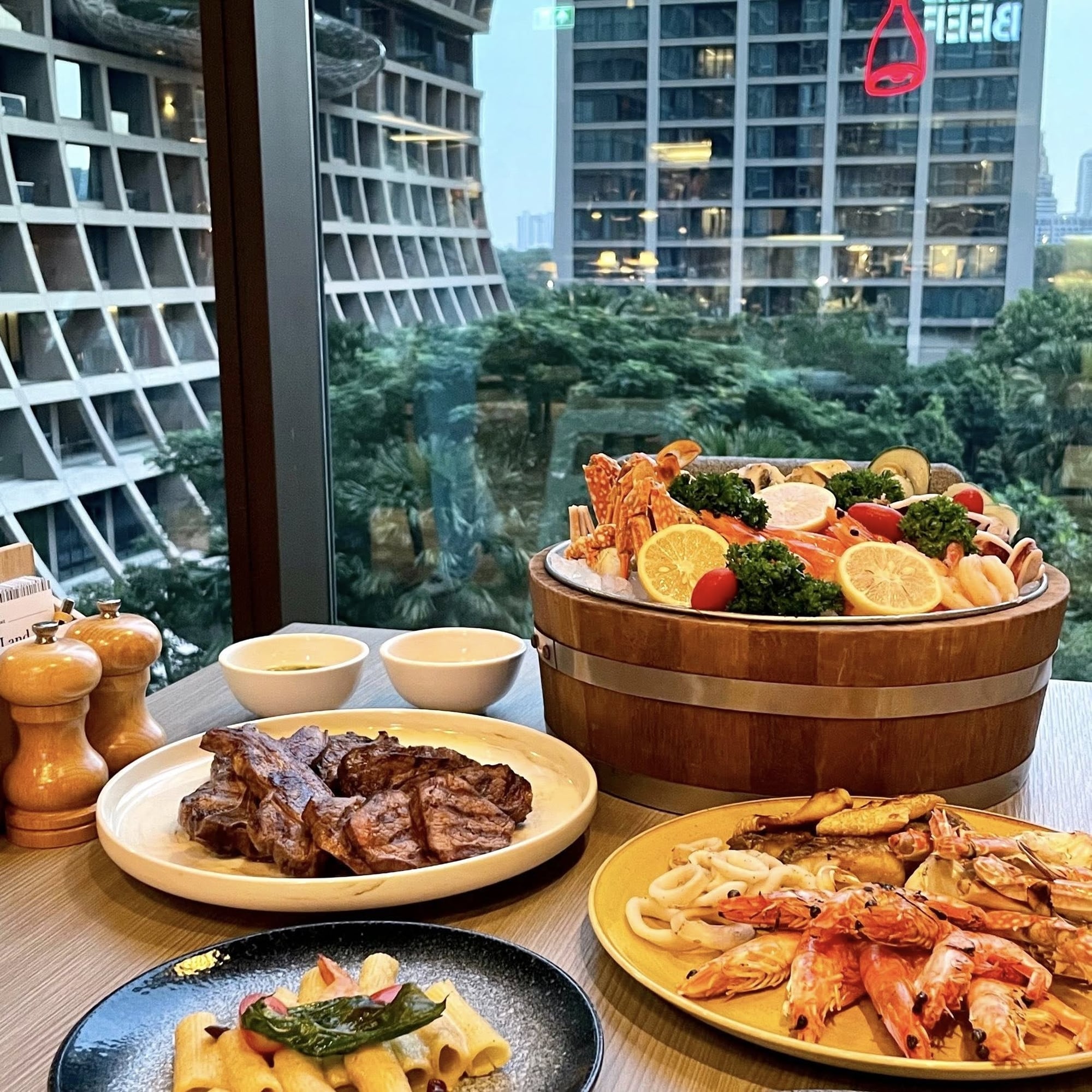 킴튼 말라이 방콕 스톡룸 레스토랑은 신선한 해산물, 프리미엄 고기, 주문 즉시 조리되고 원하시는 대로 식사를 주문하실 수 있는 단품 특선 요리를 무제한으로 제공하는 뷔페입니다. 도심 속 정원 같은 감각적인 공간!! 푸른 정원 분위기 속에서 즐기는 트렌디한 다이닝을 경험해보세요.