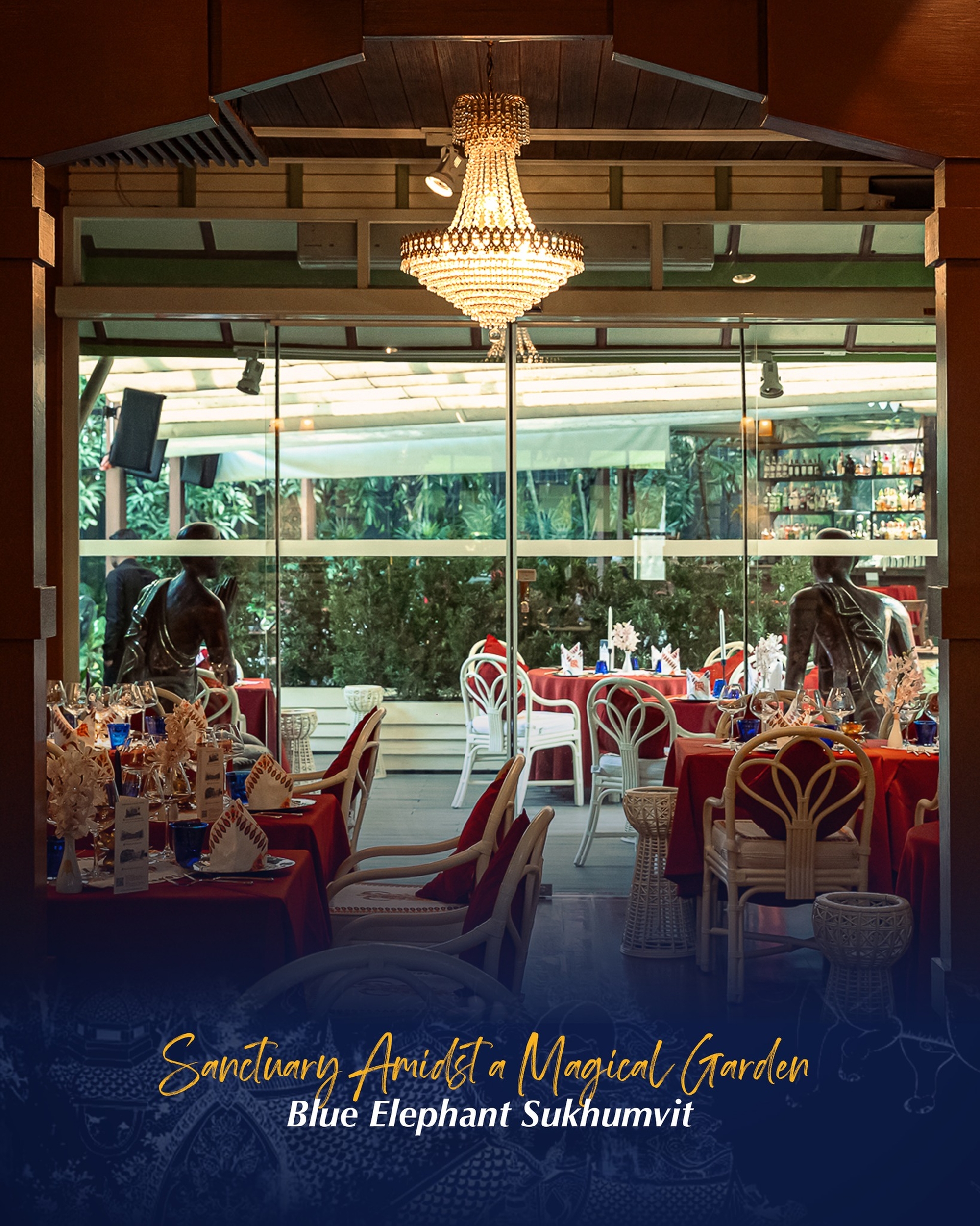 1903년에 지어져 태국 미술부에 등록되어 있는 블루 엘리펀트 레스토랑 (Blue Elephant Restaurant) 에서 진행하는 디너 세트에요. 아속 (Asok)에 위치해 있으며 오랫동안 태국 왕실 가족, 외국 공식 손님 및 VIP를 초대하는 명망 높은 장소였습니다. 블루 엘리펀트 레스토랑 (Blue Elephant Restaurant) 의 모든 인테리어 장식이 태국 스타일로 되어 있으며 대부분의 요리법은 수세기 전의 고대 태국 요리법으로 조리하여 다양하고 독창적인 메뉴의 요리를 즐기실 수 있습니다.