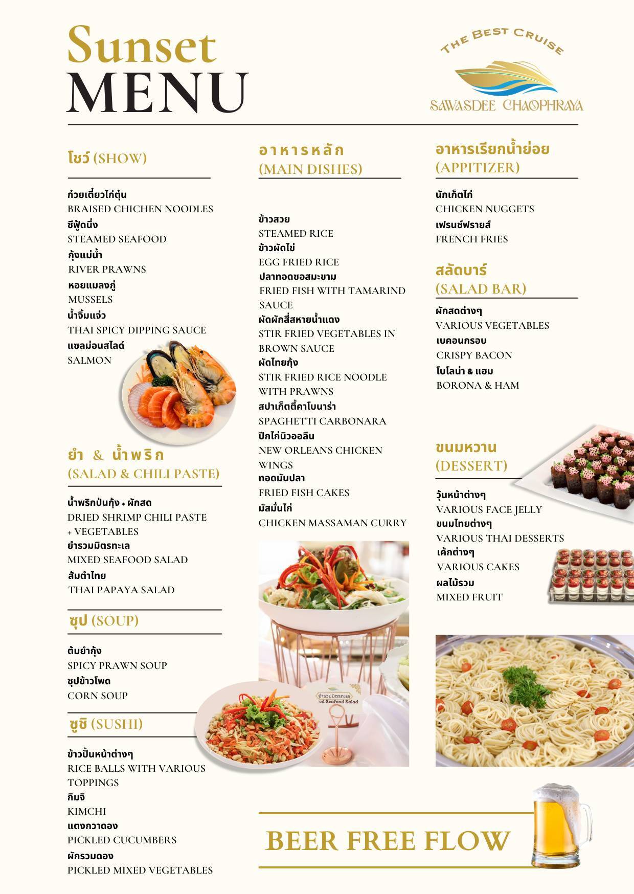 - 상품 운영에 대한 책임은 "Sawasdee Chaophraya Cruise" 에 있습니다.