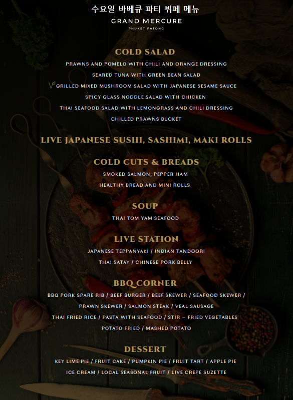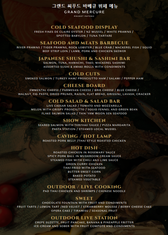 서비스와 뷔페의 질이 높아 푸켓에서 인기있는 디너 뷔페입니다. - 🍽️ 요일별 메뉴 안내