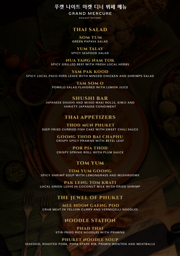- 매주 월요일 : 푸켓 나이트 마켓 디너 뷔페