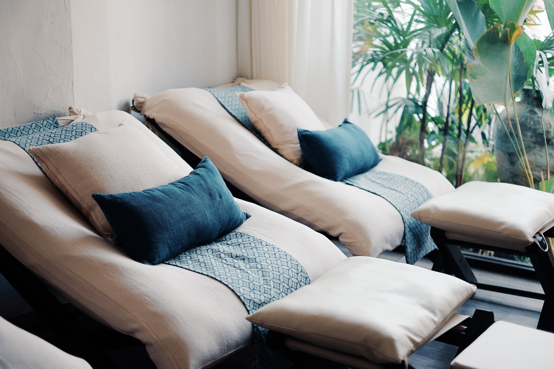 - 란나 스타일과 결합 된 현지 패브릭과 인디고 톤을 사용하여 자연스러운 느낌을 주어 편안하고 차분한 분위기에서 스파를 즐기실 수 있습니다.