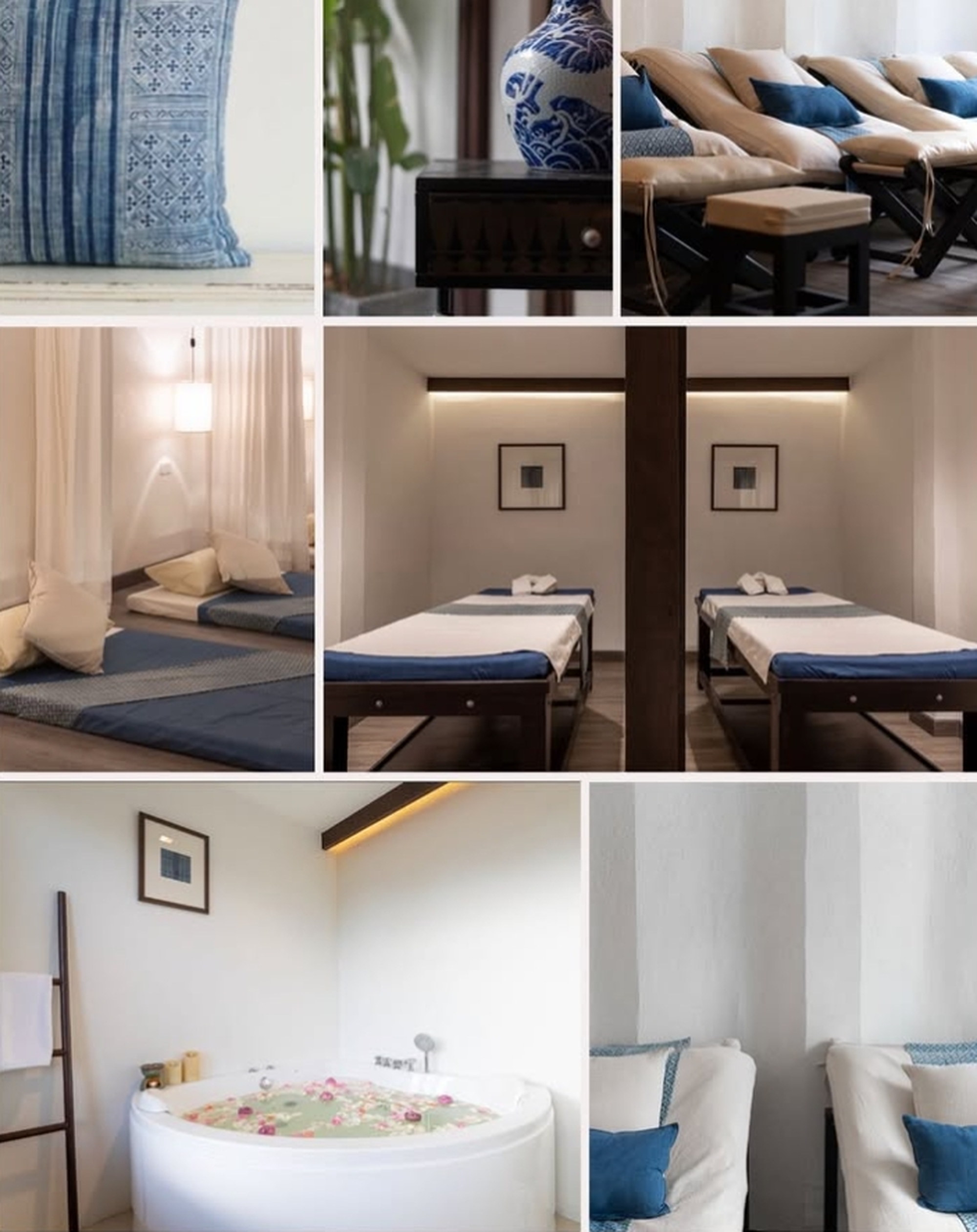 - 란나 스타일과 결합 된 현지 패브릭과 인디고 톤을 사용하여 자연스러운 느낌을 주어 편안하고 차분한 분위기에서 스파를 즐기실 수 있습니다.