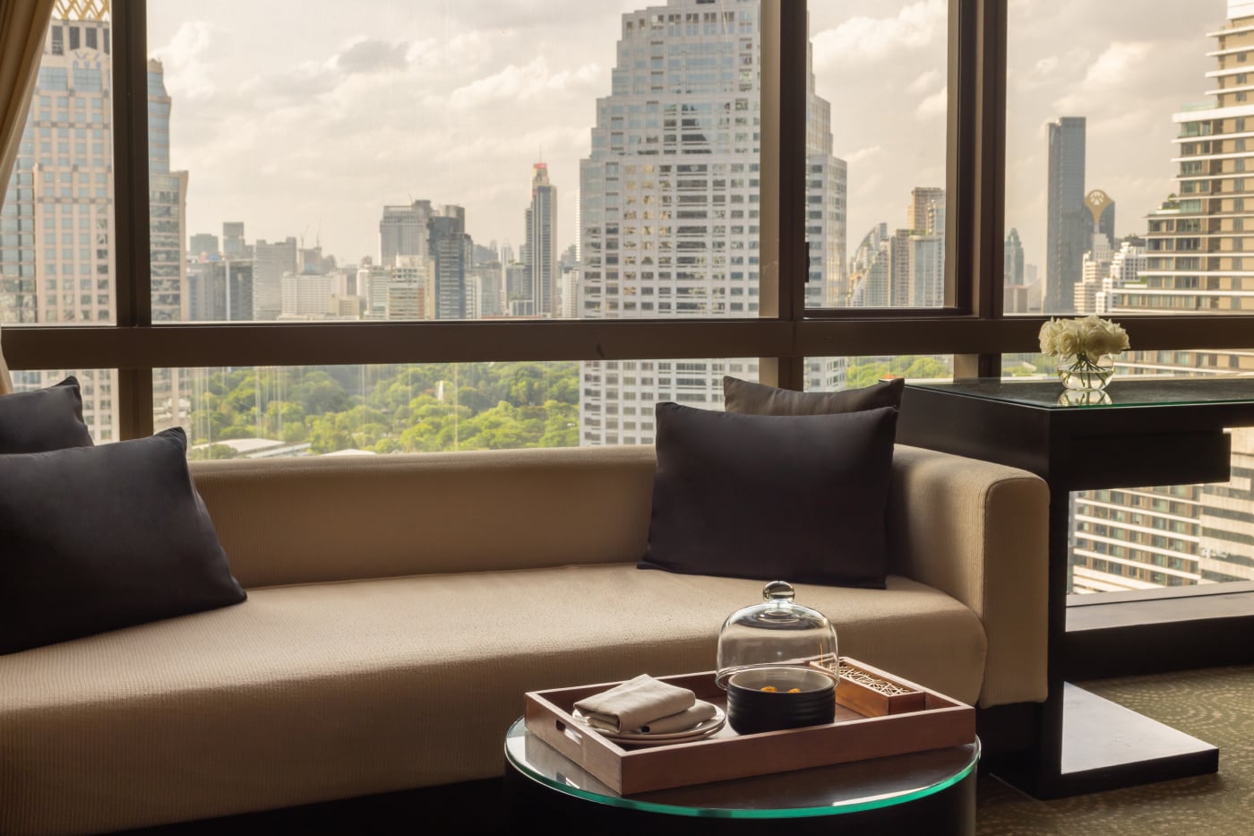 방콕 시내가 한눈에 내려다보이는 스파룸에서 고요한 분위기와 세심한 테라피스트의 손길을 경험해 보세요.