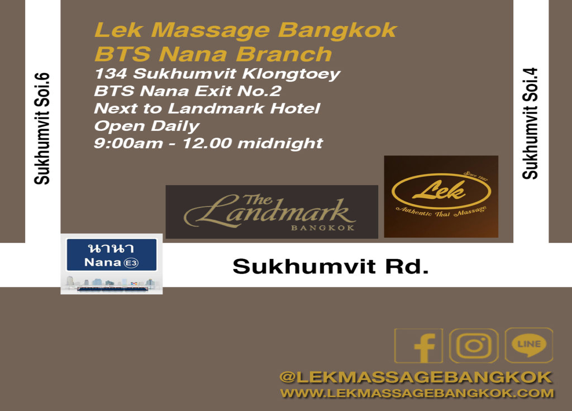 구글맵에서 'Lek Massage Bangkok - BTS Nana'를 검색 후 기사님에게 보여주세요.