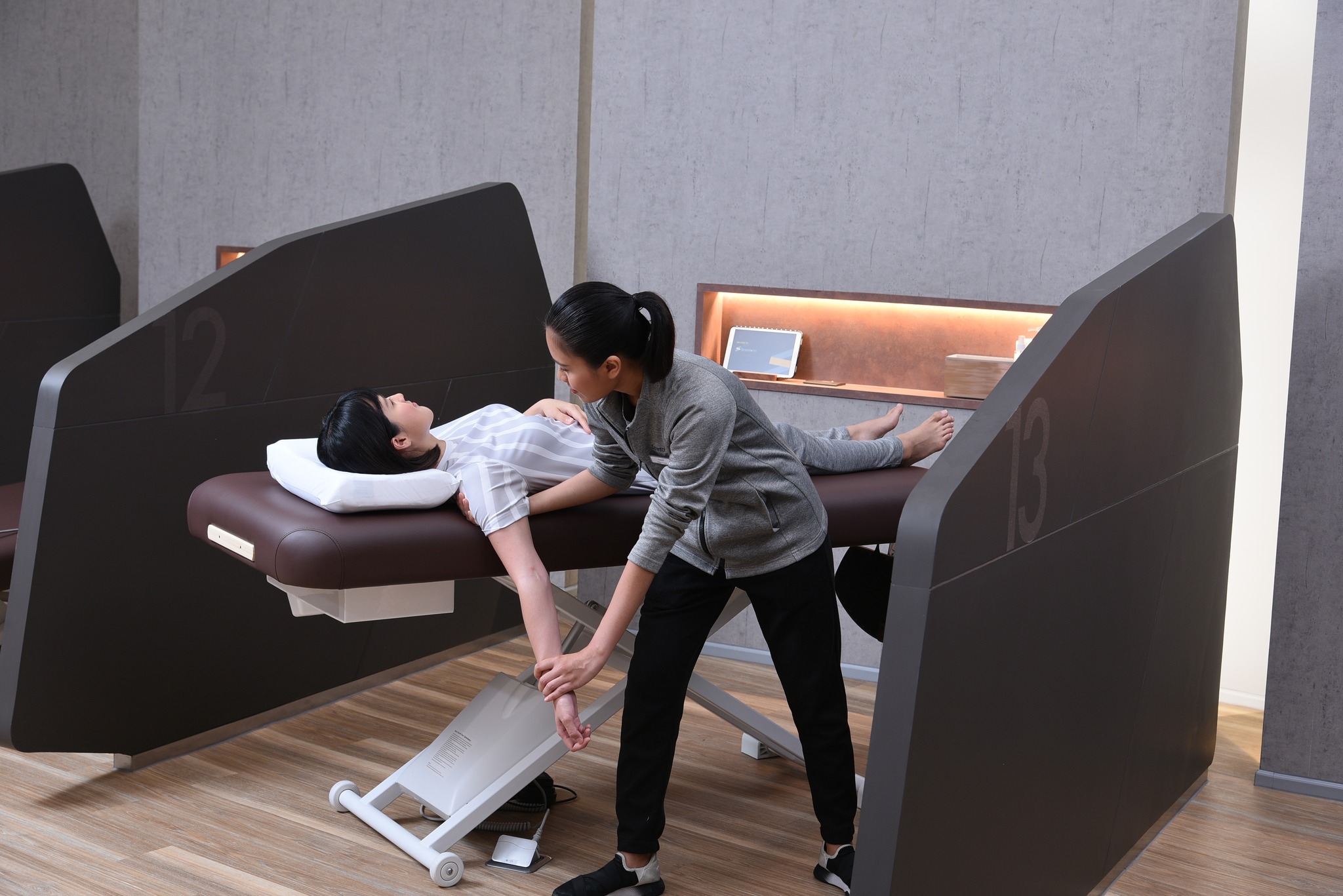 - 스트레칭 경험에 앞서 진단 및 신체 평가 세션이 정확하게 진행된 다음 숙련된 물리 치료사가 메뉴에서 전문 기술을 직접 선택하고 각 고객의 문제에 따라 가장 효과적인 프로그램을 조정합니다.