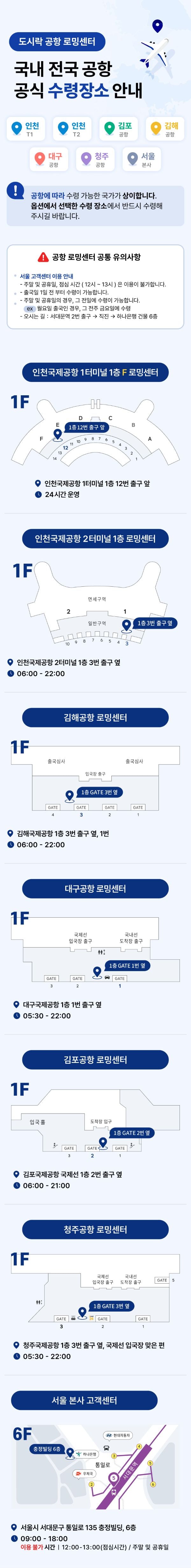 - 인천공항 T2 : 06:00 ~ 22:00