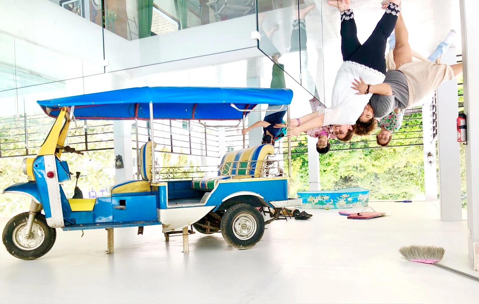 거꾸로 된 집에서 즐기는 색다른 포토 어트랙션