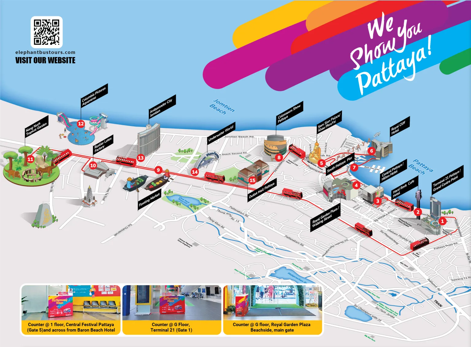 2. 센트럴 페스티벌 파타야 1층 Gate 5 (바론 비치 호텔 맞은편)