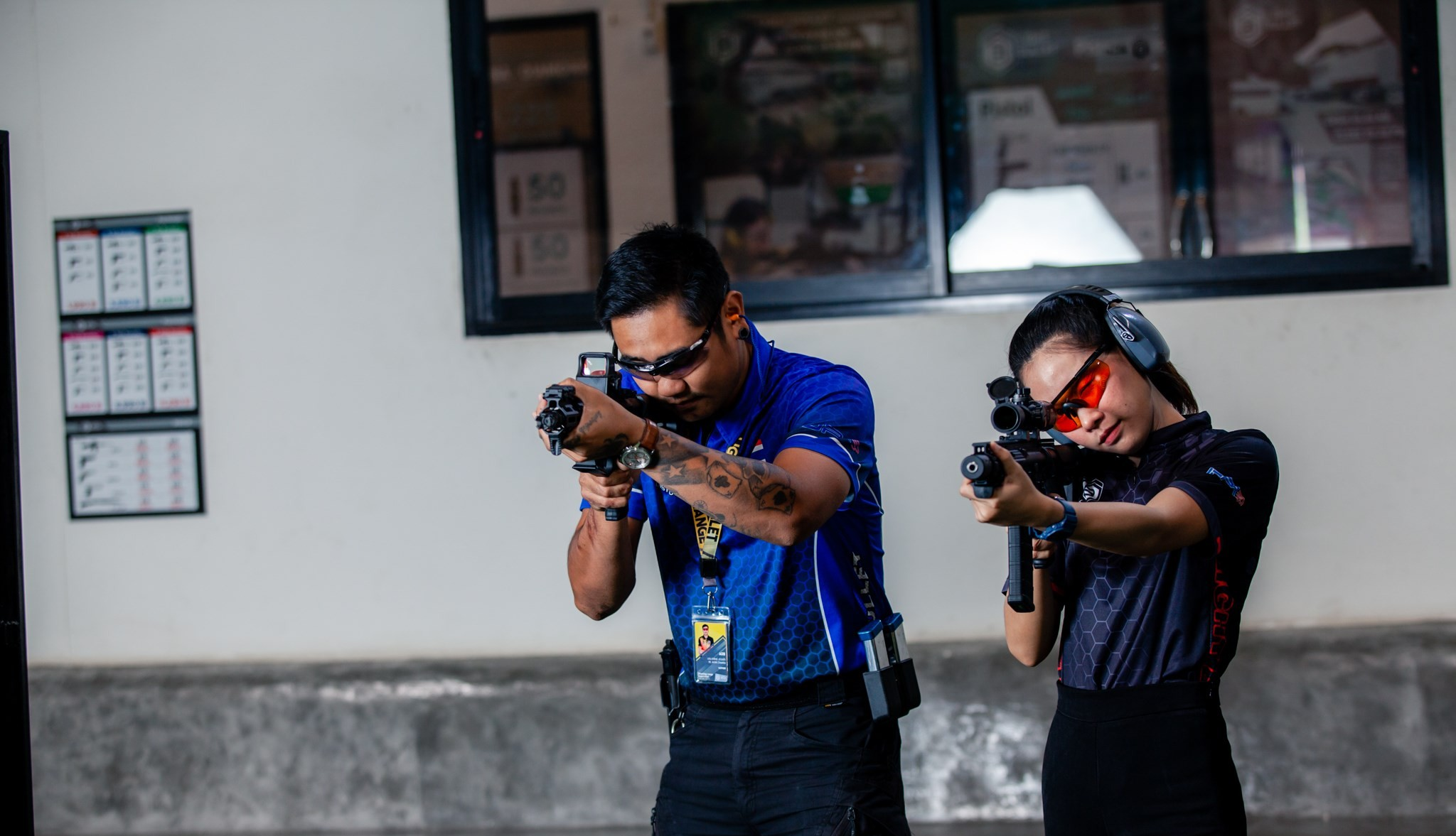 - 사격용 총기, 보호 장비, 안전 요원, 타겟지