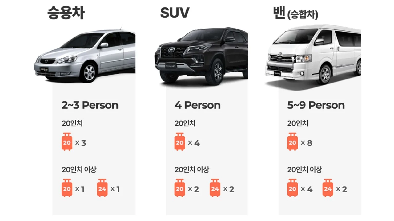 짐의 크기나 수량에 따라 차량 탑승이 제한될 수 있습니다.