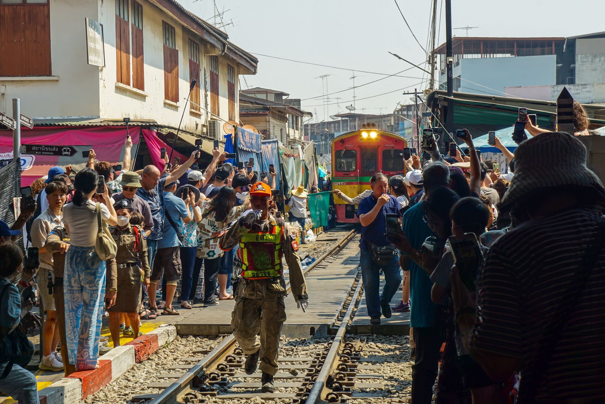 기차가 시장 사이로 지나갈 때! 상인들이 재빨리 좌판을 걷는 신기한 모습을 구경할 수 있어요.