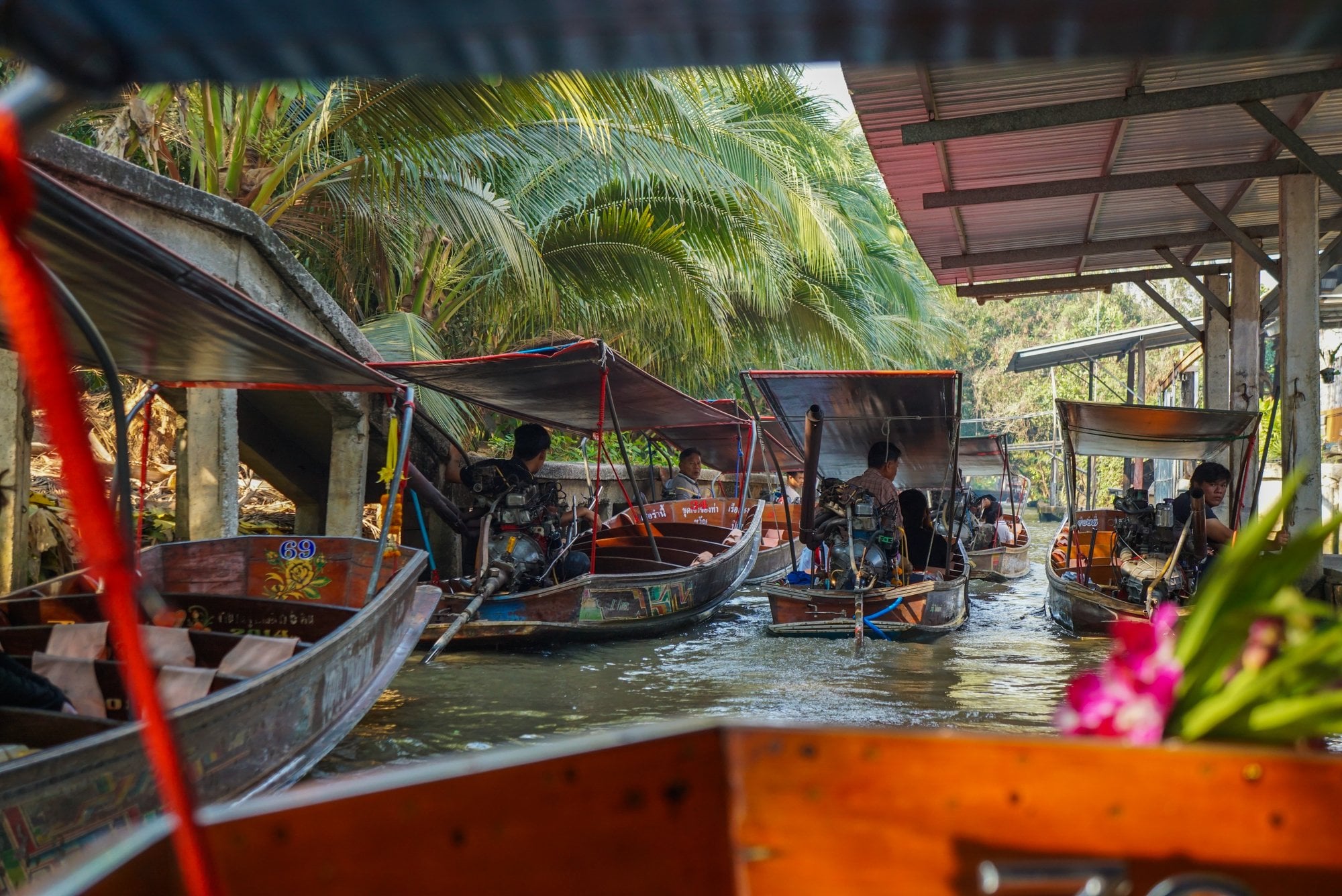 방콕에서 약 1시간 30분 거리에 있는 태국 대표 관광지 담넌 사두억 수상시장을