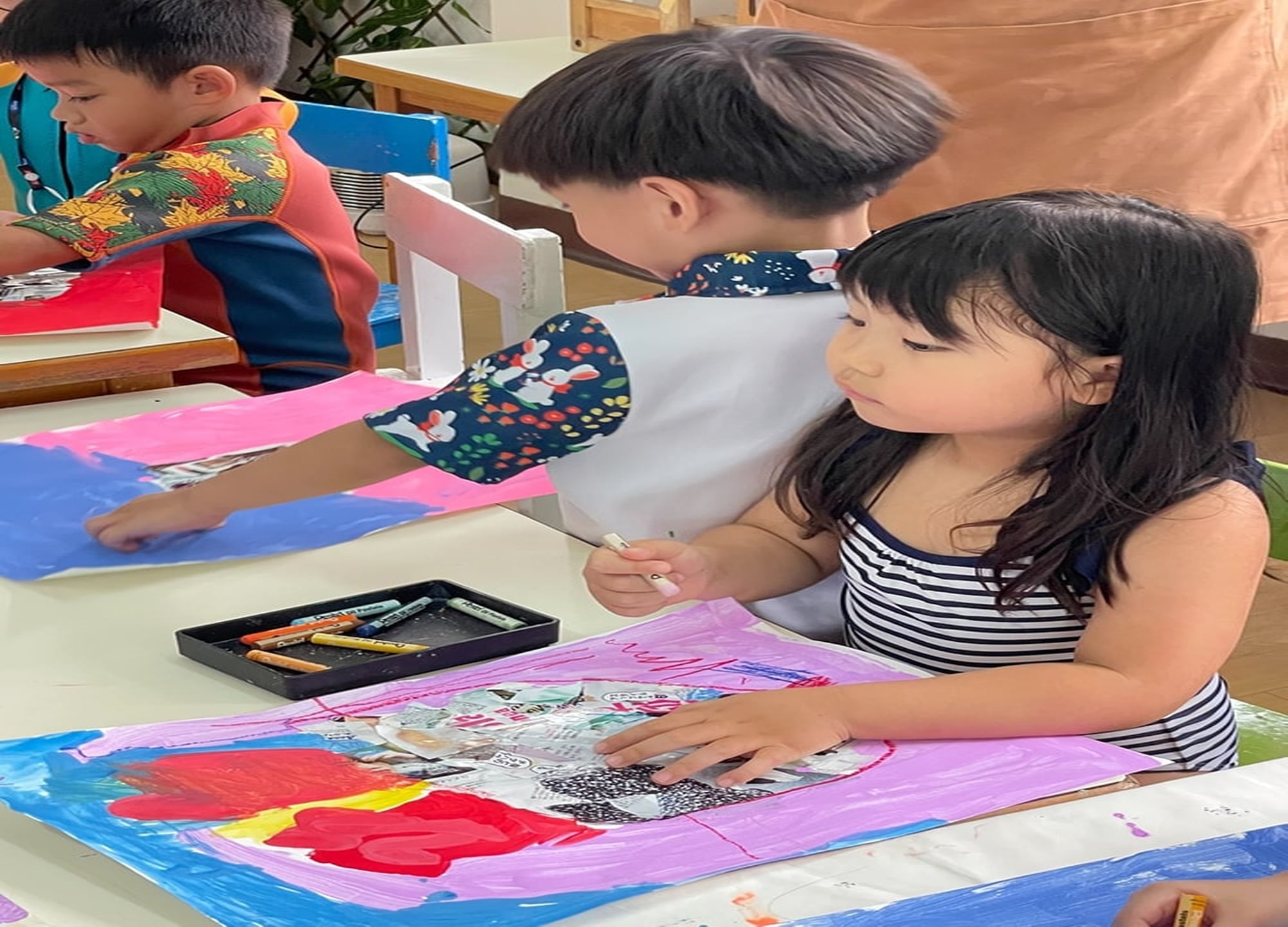 색연필과 물감, 다양한 재료를 활용해 그림을 그리고 만들기를 하며 아이 스스로 표현하는 즐거움을 느낄 수 있도록 구성되어 있습니다.