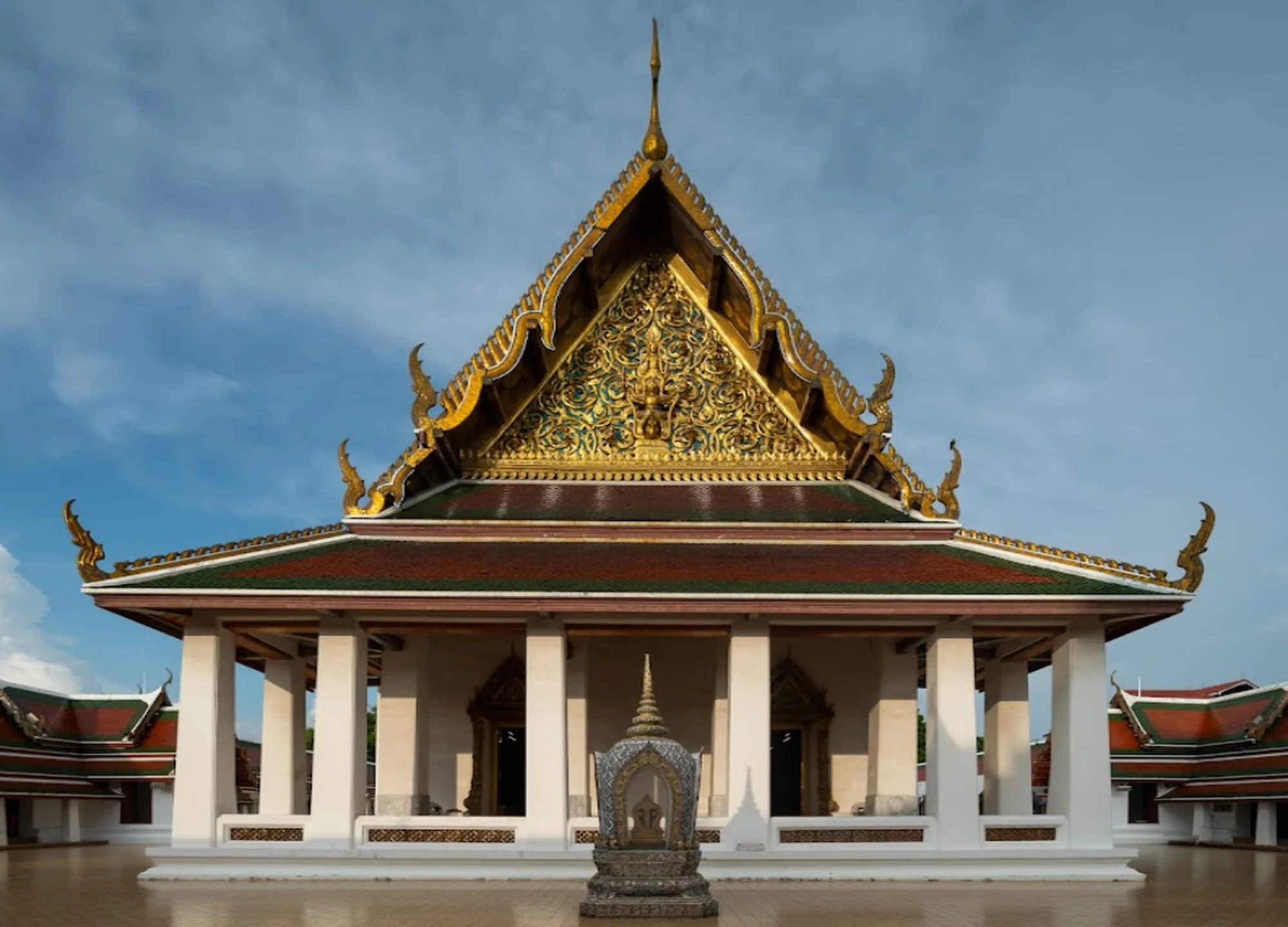 - 높은 사리탑과 많은 석상 및 유리 조각이 있는 대규모 불교 사원 단지입니다.