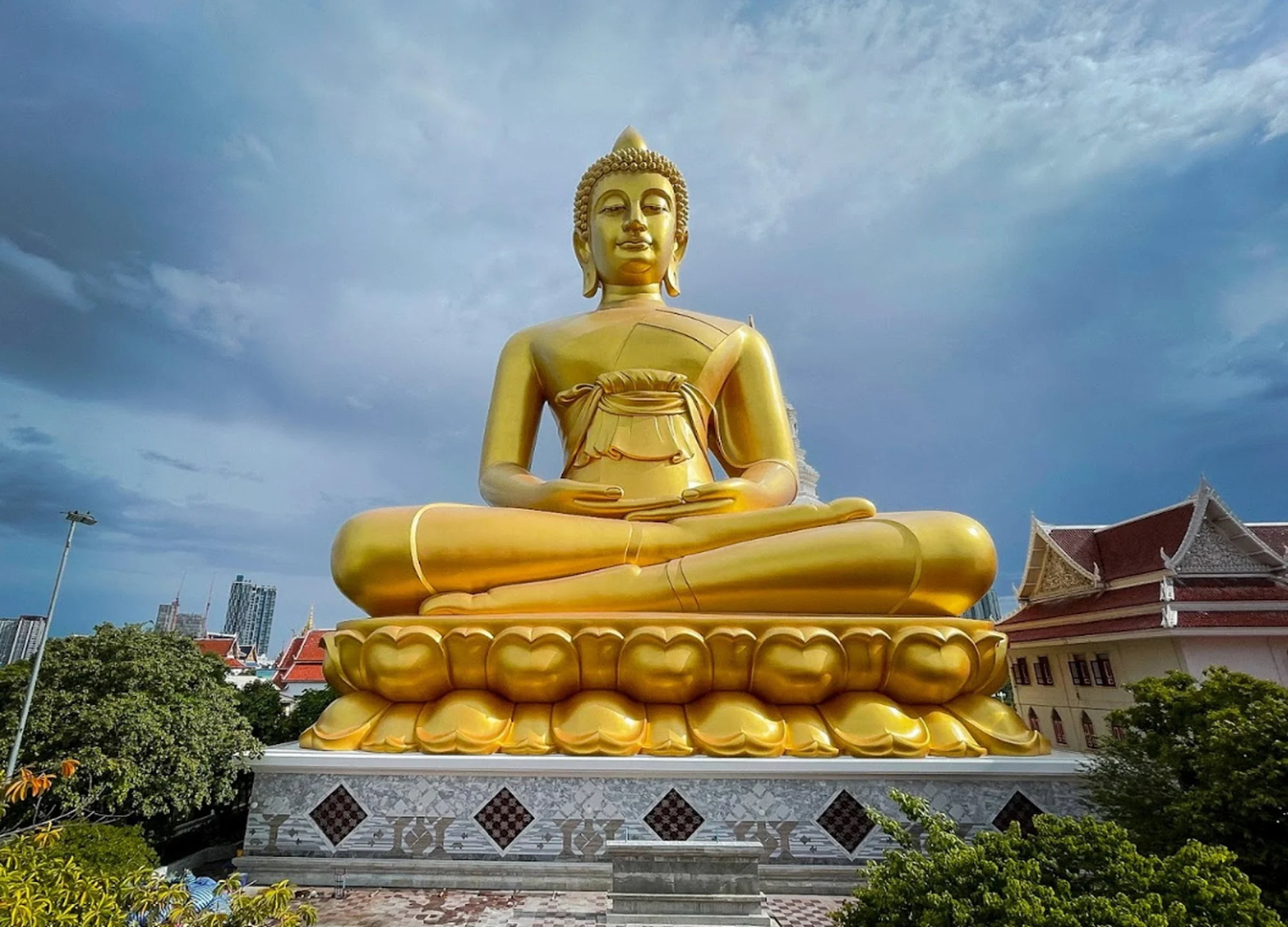 - 높은 사리탑과 많은 석상 및 유리 조각이 있는 대규모 불교 사원 단지입니다.
