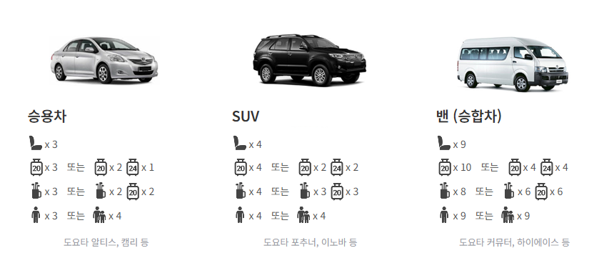 1~3인 : 승용차 (최대 3인)