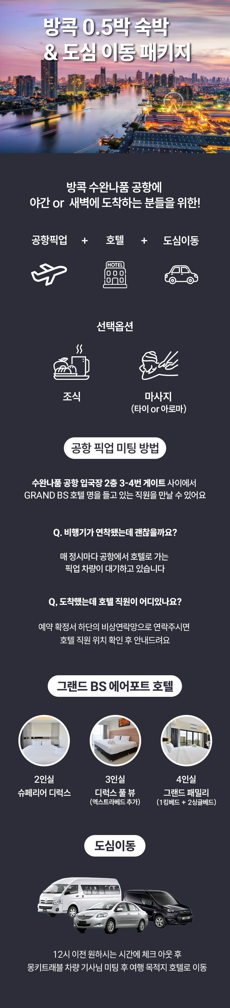 늦은 저녁이나 새벽 도착하시는 여행객을 위한 0.5박 결합 상품으로