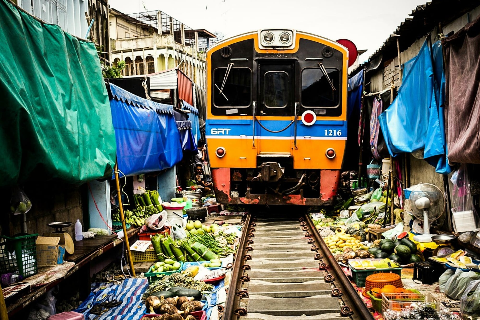기차가 시장 사이로 지나갈 때! 상인들이 재빨리 좌판을 걷는 신기한 모습을 구경할 수 있어요.