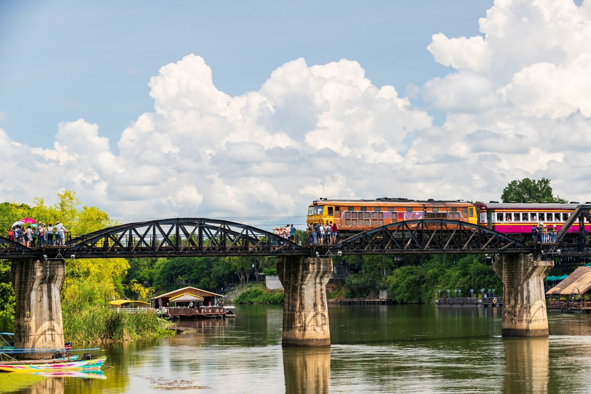 - 콰이강의 다리는 제2차 세계대전 당시 건설된 철도로, 칸차나부리를 대표하는 역사적 명소입니다. 현재는 기차가 오가는 실제 다리이자 누구나 도보로 건널 수 있는 관광지로, 강 위에 펼쳐진 풍경을 여유롭게 감상하기에 좋습니다. 해질 무렵에는 강과 다리가 어우러진 분위기가 특히 인상적입니다.