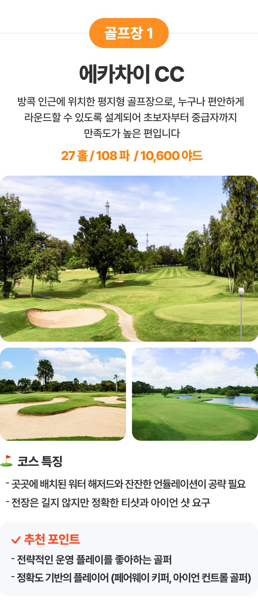 [방콕] 시내 호텔 에카차이/스파프룩/레이크우드/더 빈티지 CC 3박 (54홀)