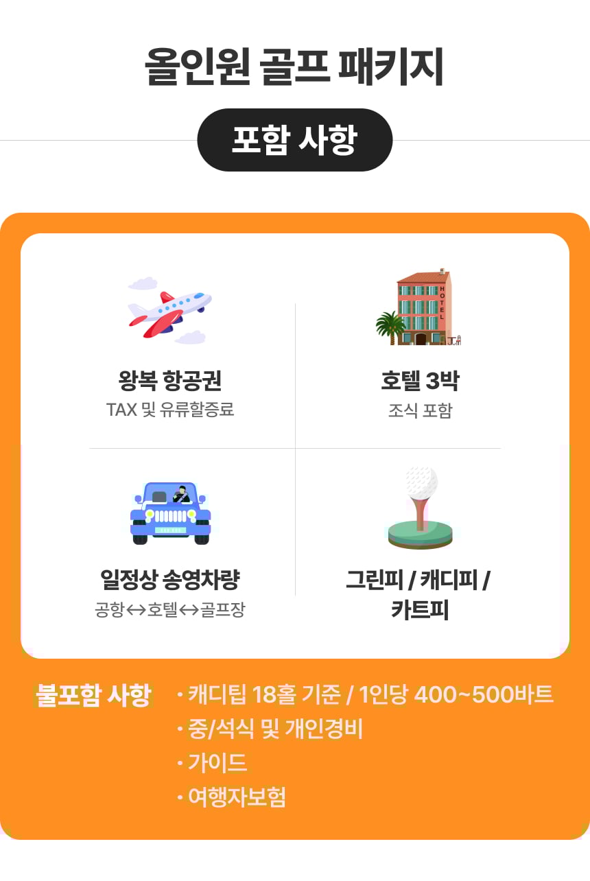 - 태국 공휴일 라운드 시 주말 요금이 적용되어, 1인 2만원 추가 금액 발생됩니다.